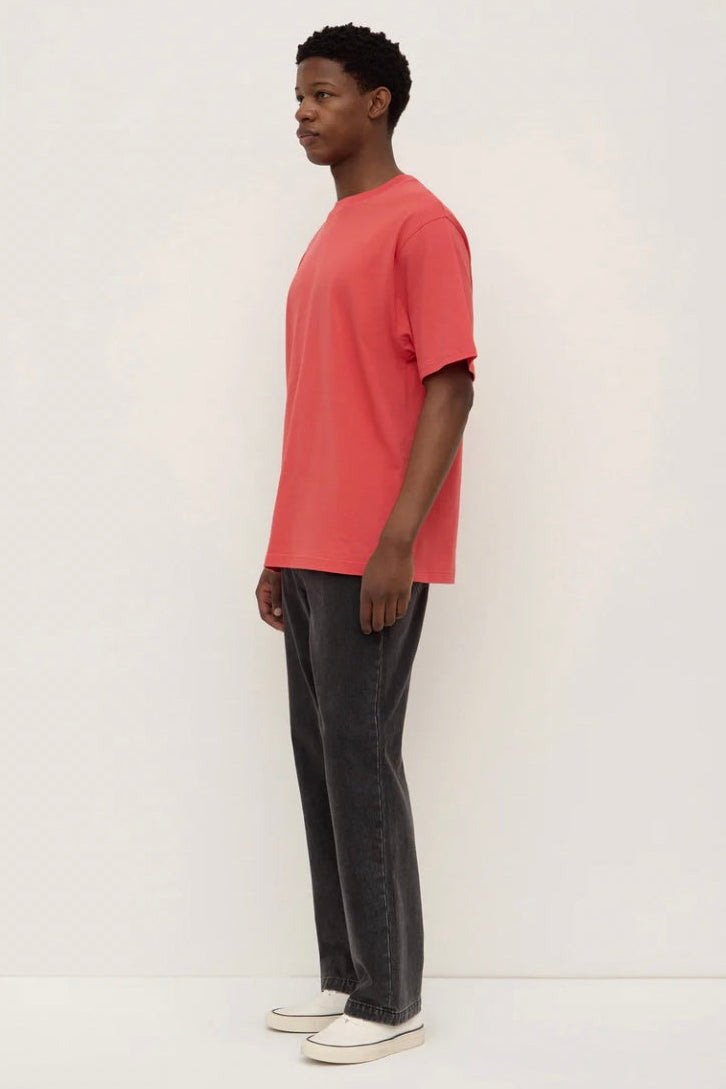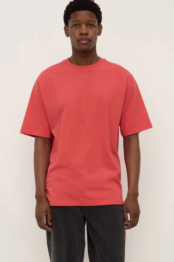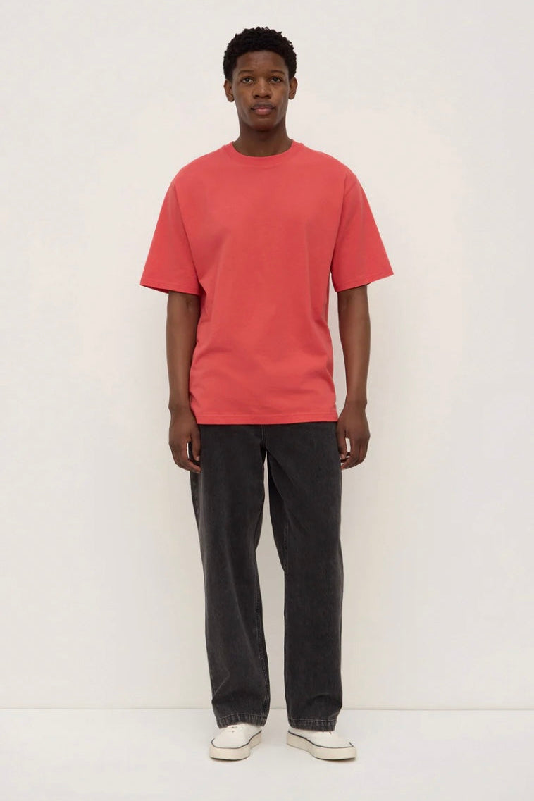 The Knox Organic Oversized Tee in washed chilli is an oversized mens fit, made from 100% organic cotton, that has a dry hand feel.