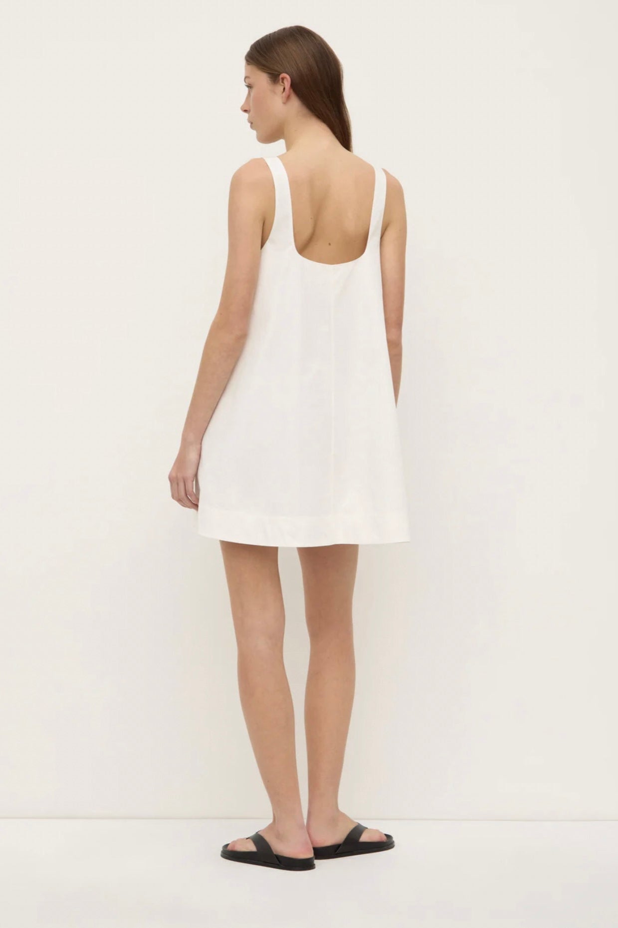 Cut in an A-line silhouette, this mini dress is crafted from a lightweight cotton poplin and features a square scoop front and side pockets for added utility.