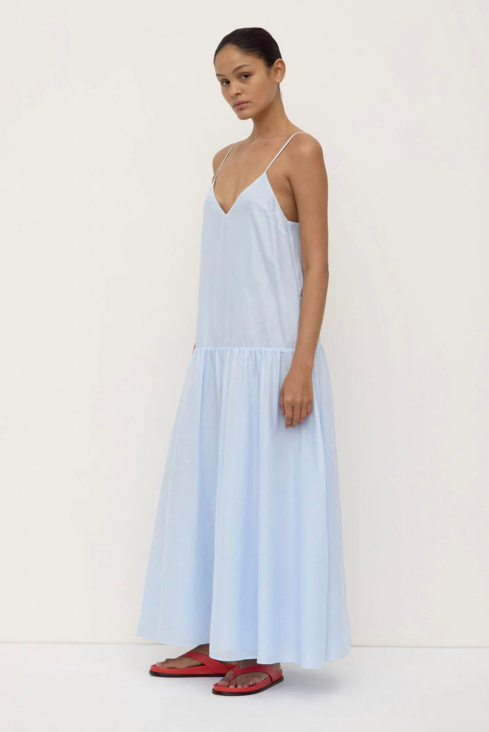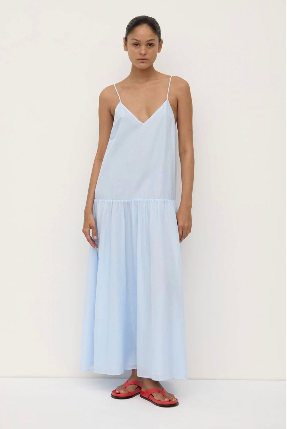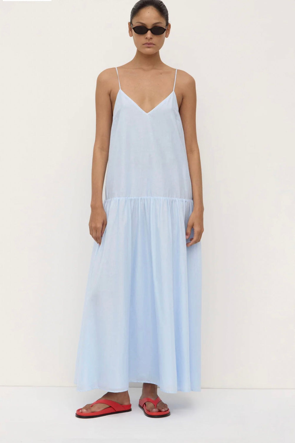 Cut in a maxi length silhouette, the Masie Dress is crafted from a lightweight cotton and is designed for a breezy, relaxed fit. Features a v-neckline, dropped waist and gathered skirt for easy movement.