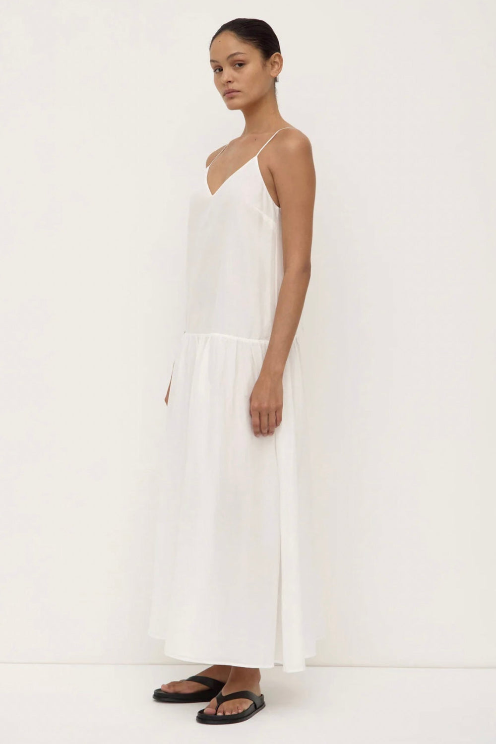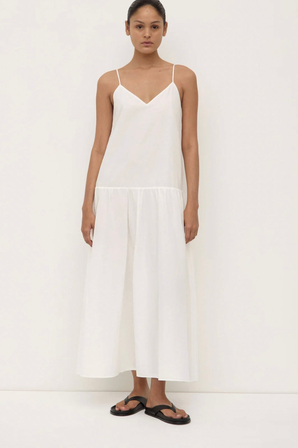 Cut in a maxi length silhouette, the Masie Dress is crafted from a lightweight cotton and is designed for a breezy, relaxed fit. Features a v-neckline, dropped waist and gathered skirt for easy movement.