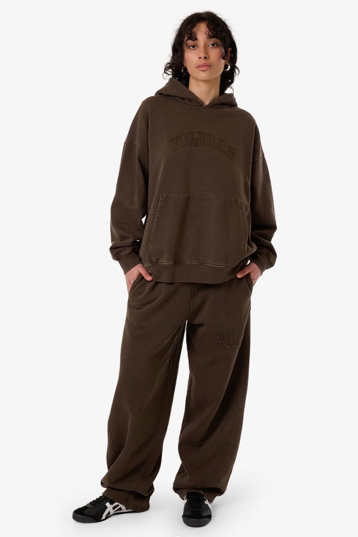 Wrap yourself in comfort with this Hood; Crafted with a soft blend of cotton and brushed fleece, this oversized hoodie with a large kangaroo pocket delivers warmth and laid-back style. Designed with tonal Thrills logo embroidery for a subtle, elevated touch.