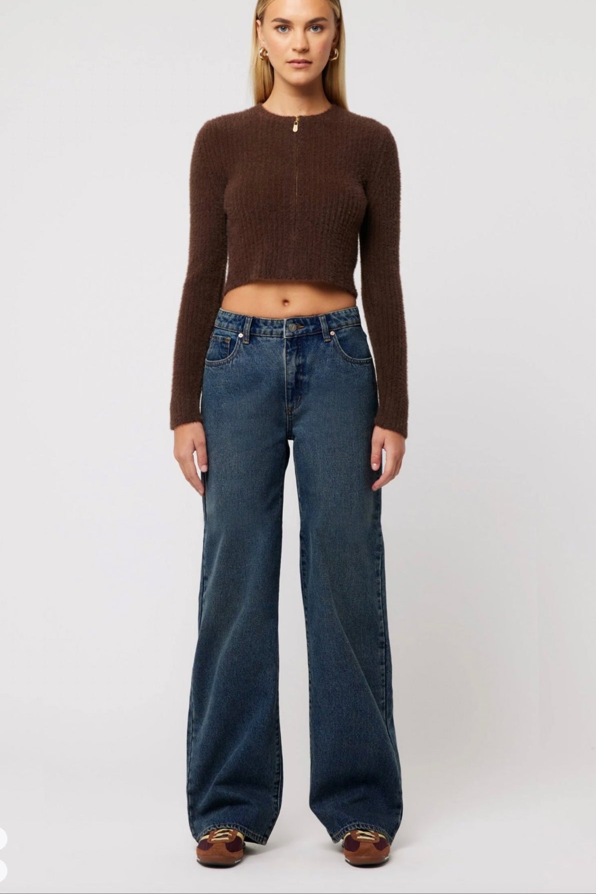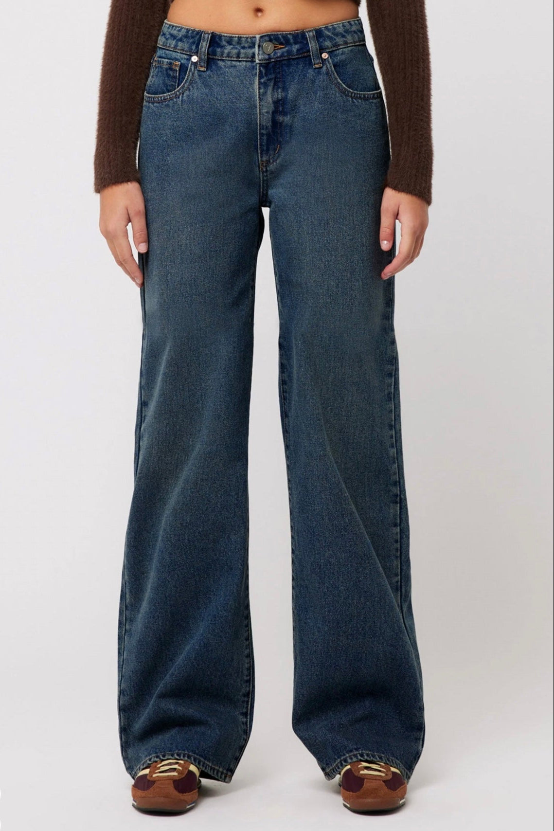 Designed with a mid-rise waist that sits just below your belly button, these jeans feature a relaxed fit through the butt, thighs, and legs for comfort, with a wide straight leg that bunches at the ankle.