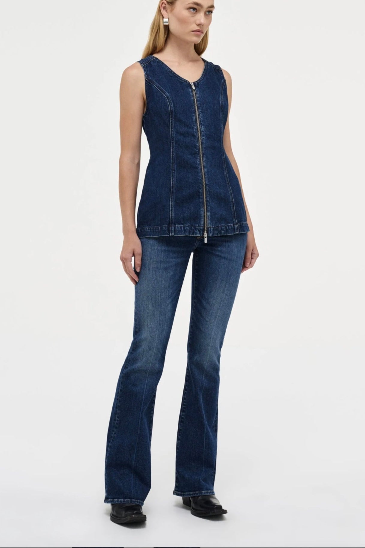 The Kara Boot is a slim-fit bootcut jean with a mid-rise waist, crafted from premium comfort-stretch denim.