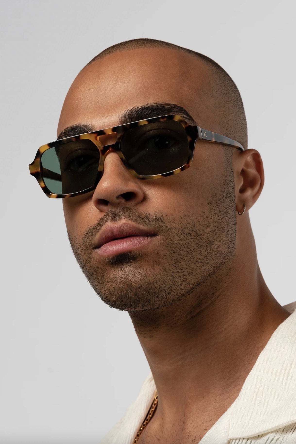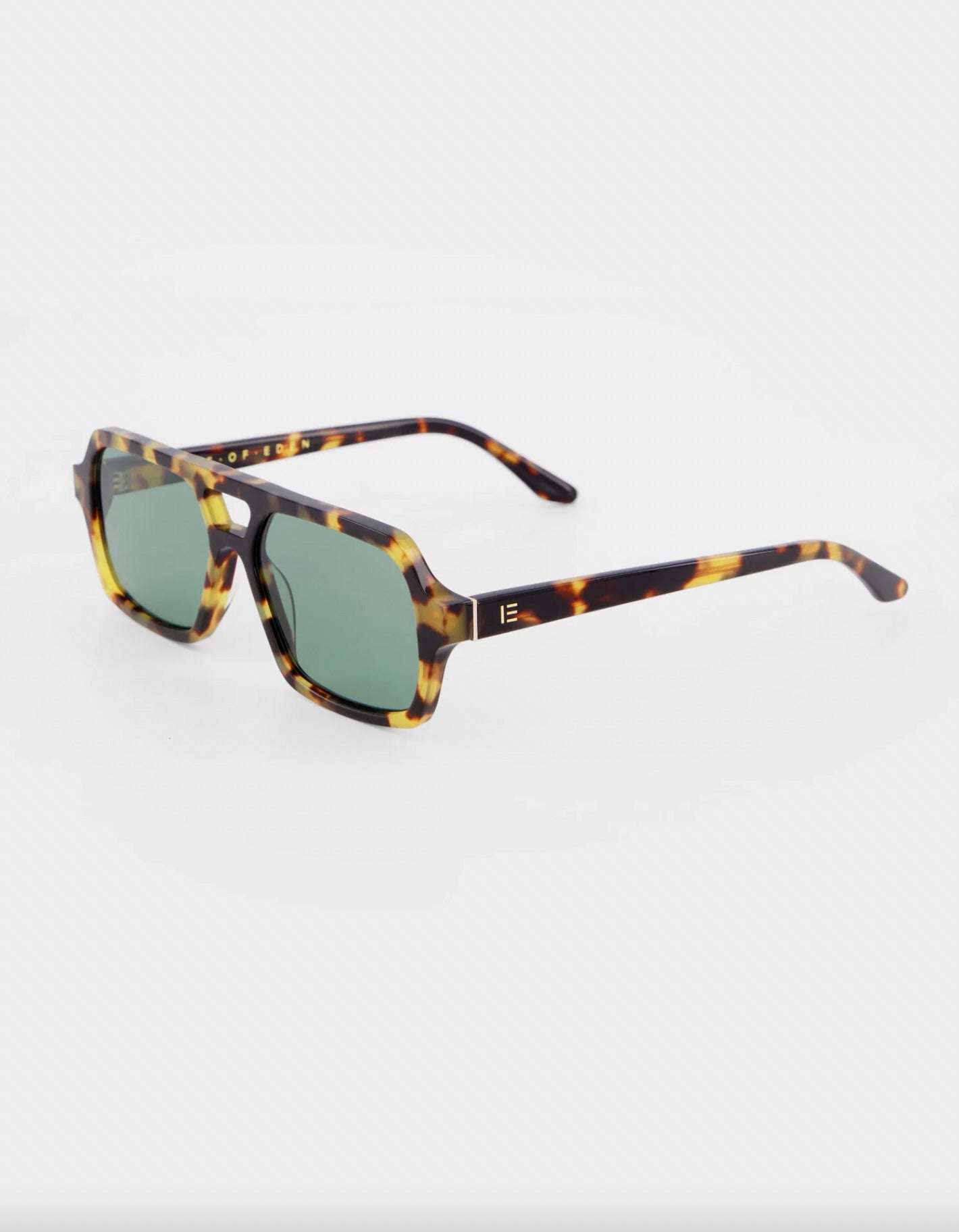 Isle of Eden Lola is our take on a chic 1970's Aviator. The silhouette has been modernised with a rectangular form factor, and low-base CAT2 lenses with an edgy, premium finish. The temples (arms) are detailed with our logo in gold as well as metal trims with IOE de-bossing.