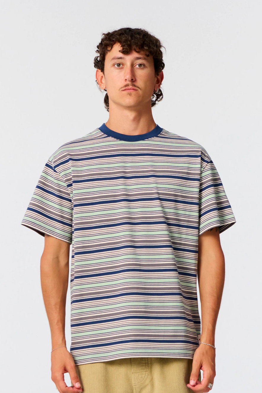 Sun Cured Stripe Tee Worker Blue