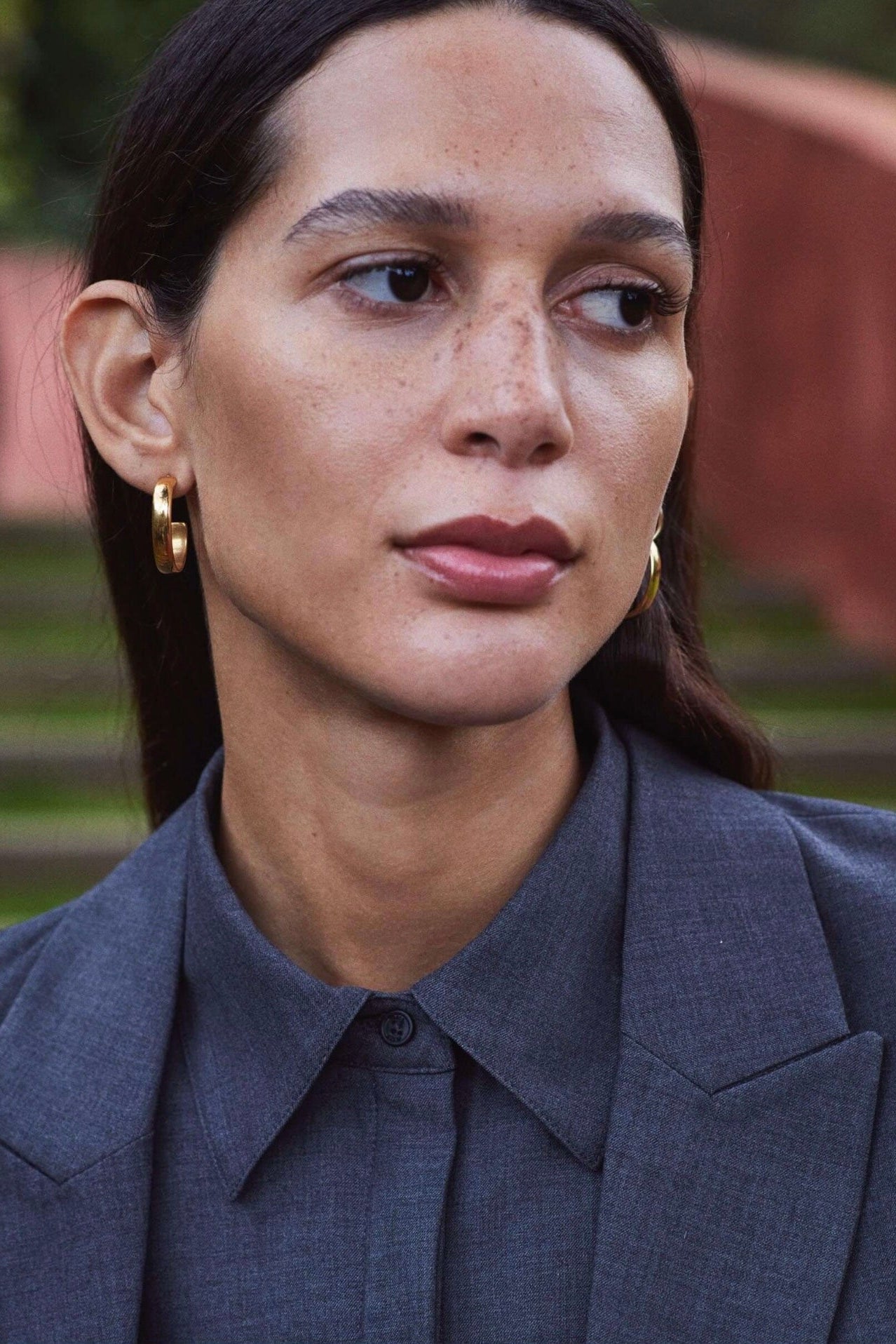 Dark grey tailored blazer with lapel collar. Fully lined blazer made from a viscose and wool blend.