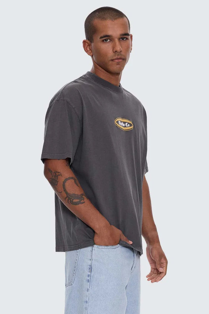 The Bueno Oversize Fit Tee in Merch Black is a streetwear staple you'll wear on repeat. Made from 100% organic cotton, it features a roomy fit with a ribbed crewneck, delivering a breathable yet weighty dry hand feel that holds its shape. The box fit t-shirt cut with dropped shoulders brings that relaxed oversized silhouette, while the logo graphic pops against the washed black base.