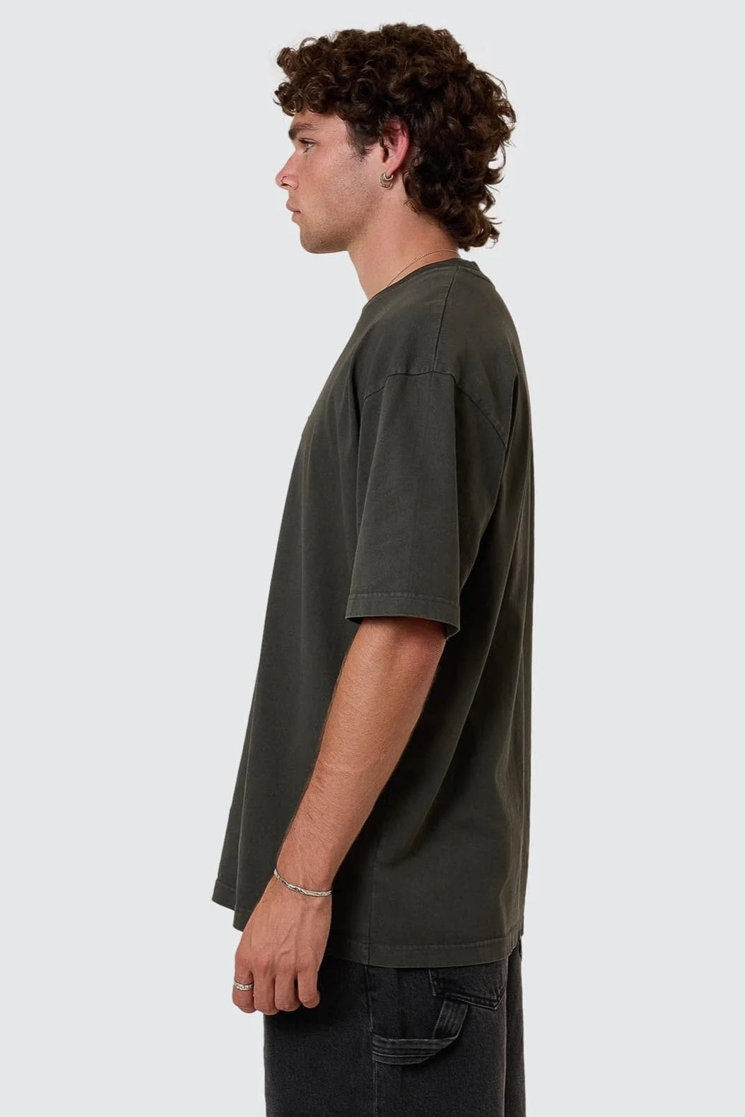 The Built To Win Oversize Fit Tee in Oil Green delivers clean branding and a structured, relaxed fit tee silhouette. Made from heavyweight cotton jersey, it easily holds shape without compromising comfort. A moody, earthy alternative to your basic black oversized tee, this Thrills tee is soft, featuring a ribbed crew neckline and dropped shoulders for a laidback vibe.