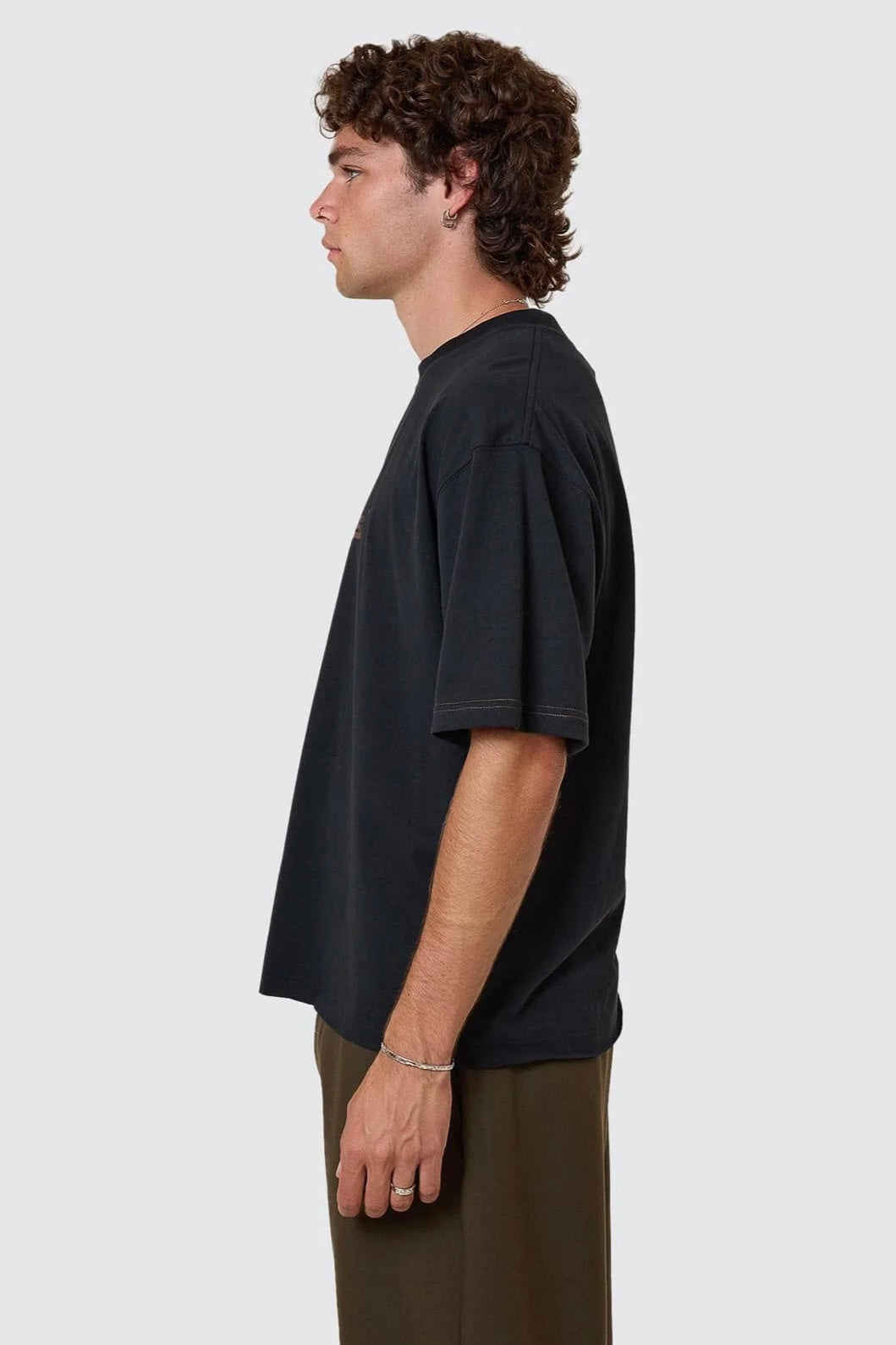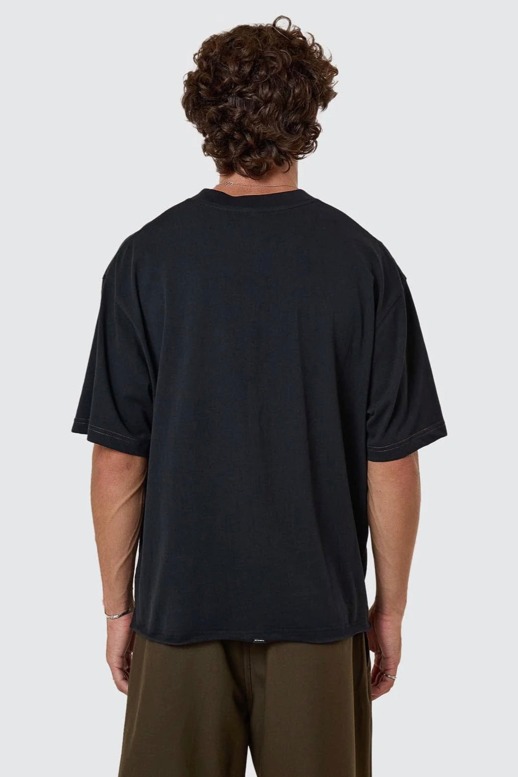 Boxy, cropped, and cut with intention, the Metamorphic Daze Box Fit Oversize Tee in Washed Black is made from heavyweight organic cotton t-shirt jersey fabric, it features a short length, raw hem and a roomy boxy silhouette for easy wear, a new variety to add to your everyday black tees rotation. Finished with a centre cracked graphic for a touch of vintage feel.