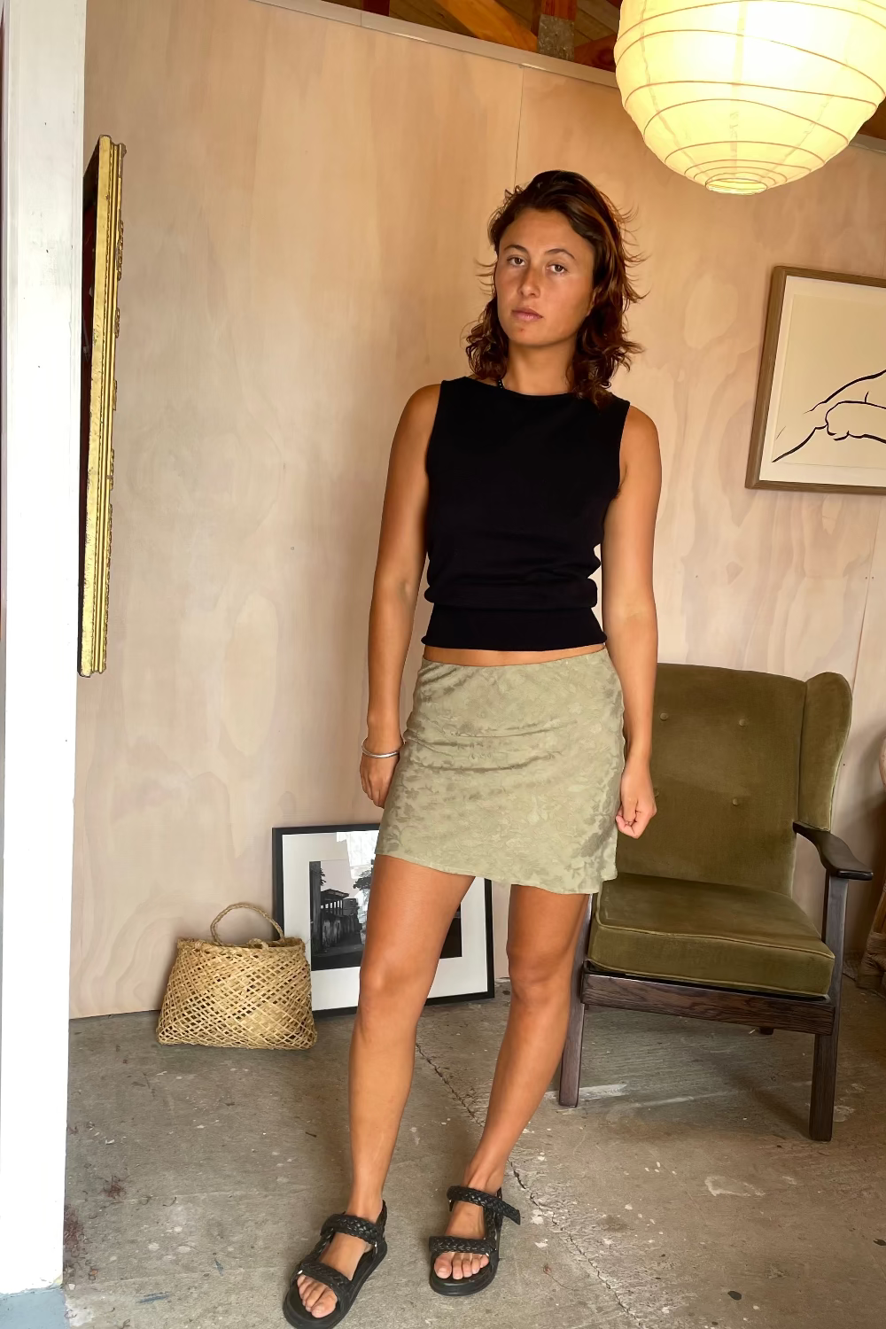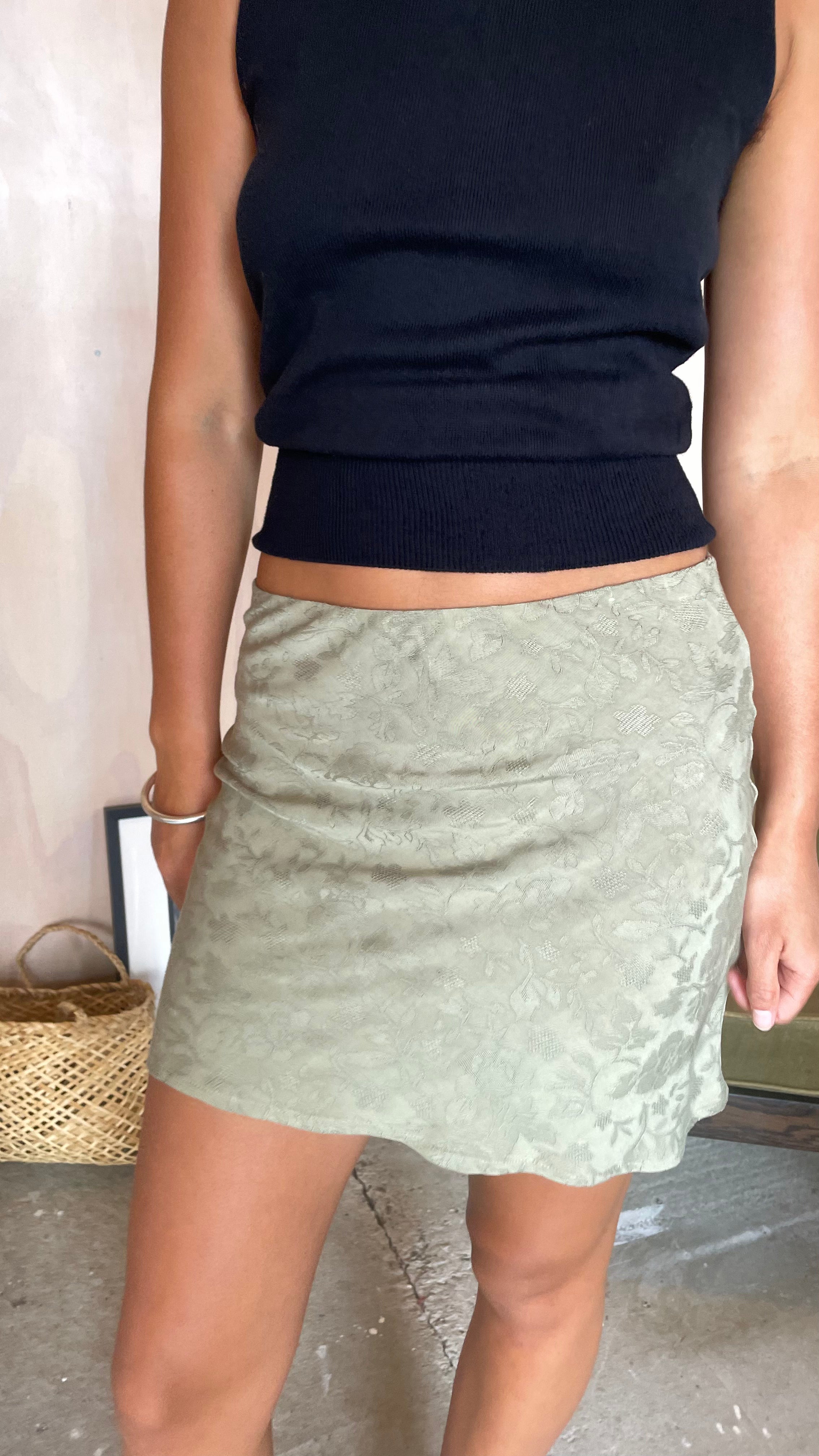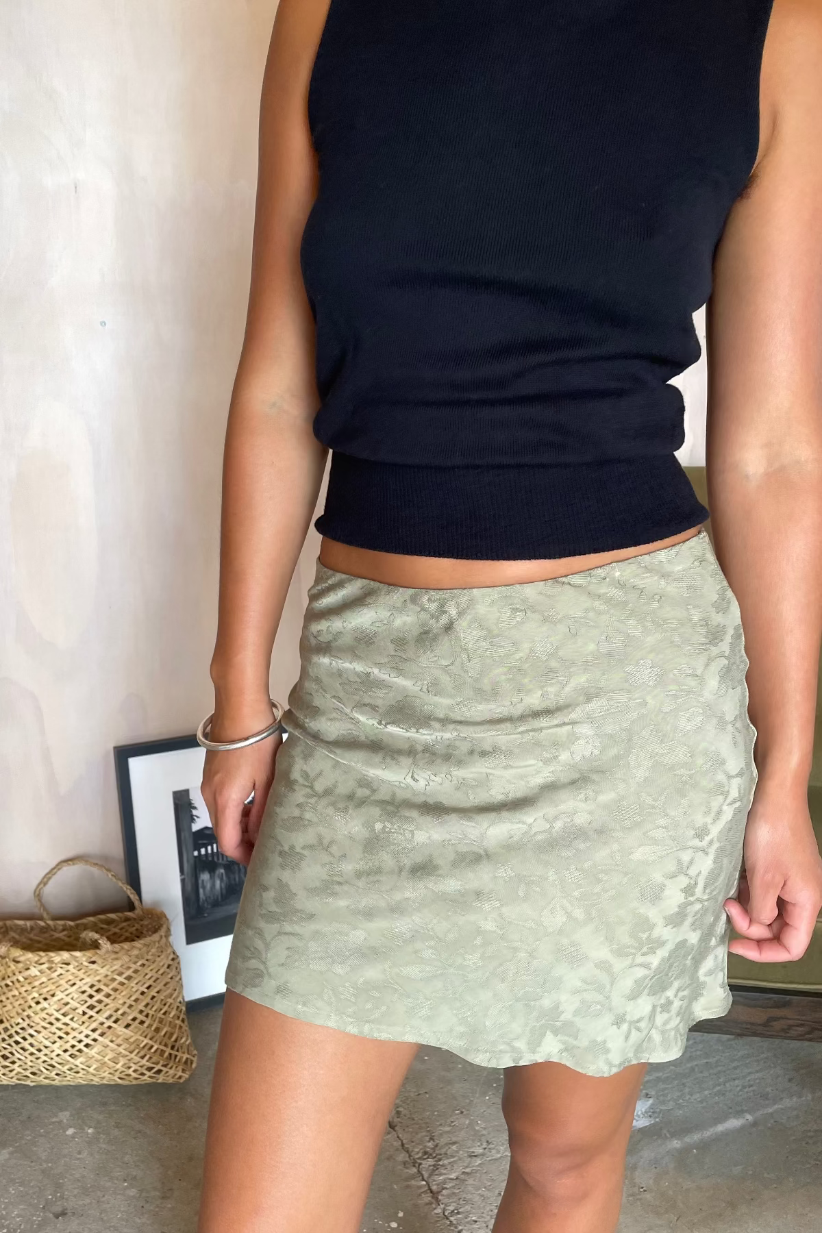 Paltrow Bias Mini Skirt cut in a floaty floral jacquard is a cute classic summer piece. Elasticated waist means you can wear higher or lower on your waist. Dyed to our own colour palette.