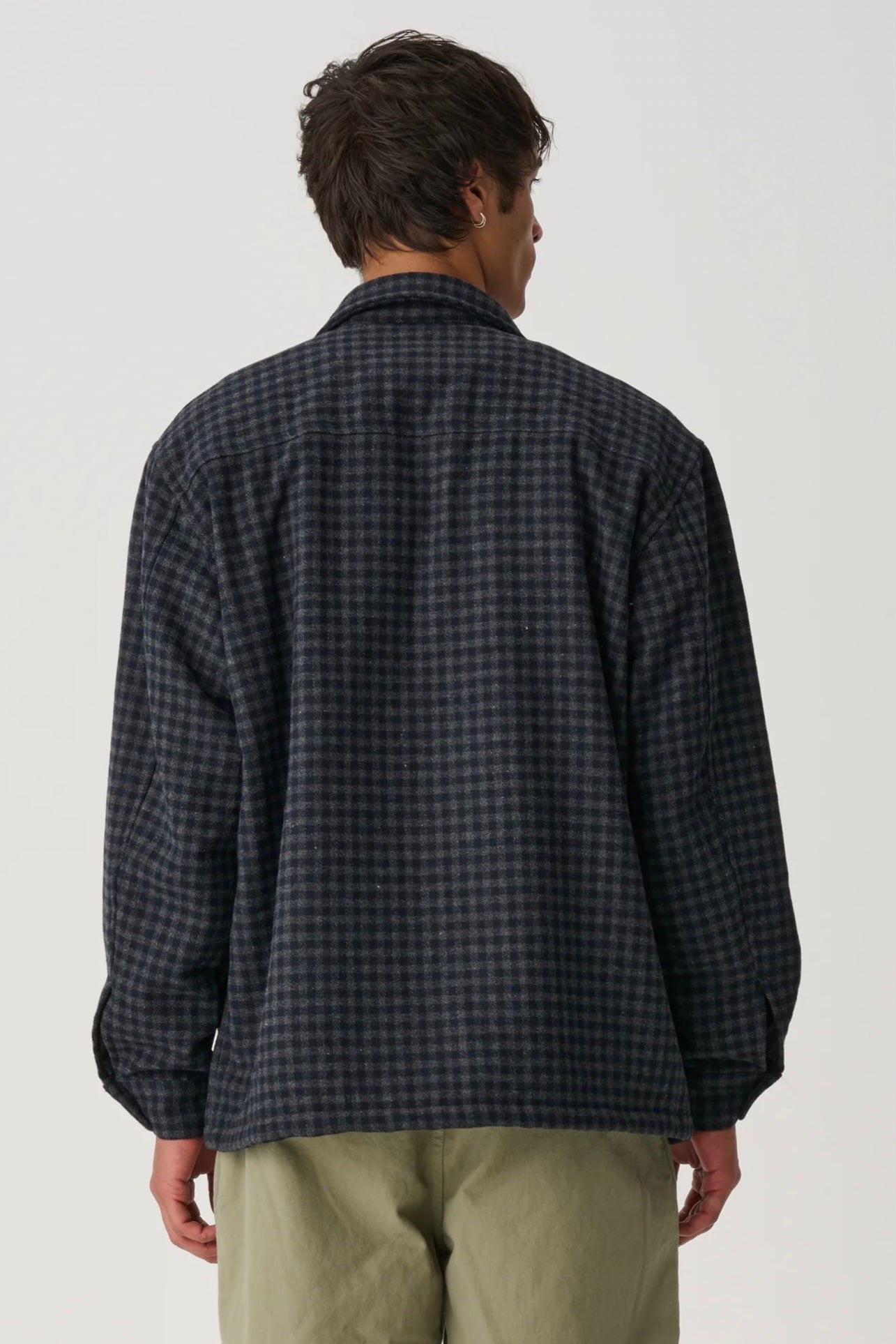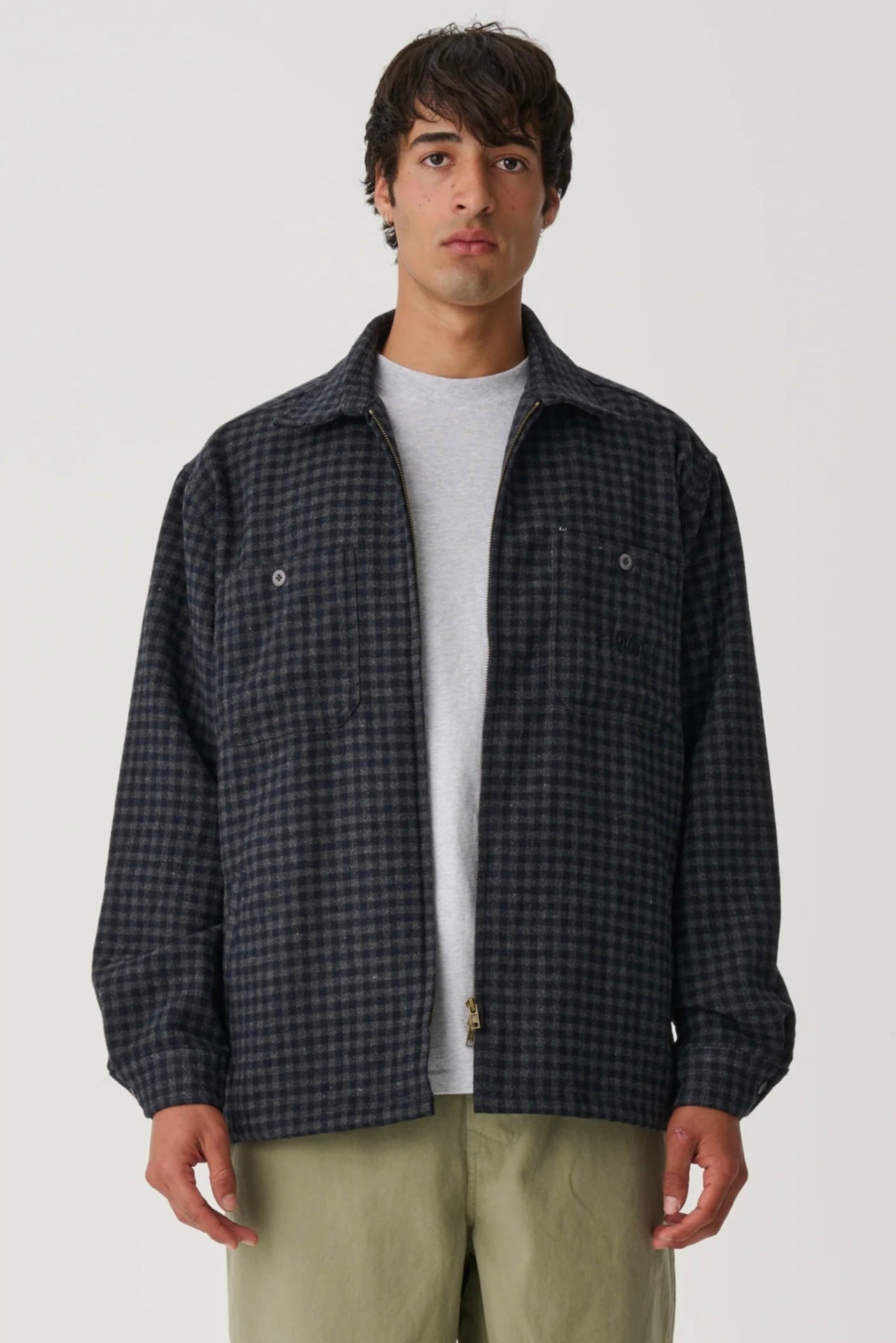 This shirt is made using cotton deyed yarn then woven into a classic check motif. It features a double zip, side seam and patch pockets and is fully lined. A structured shirt with the advantage of a jacket feel.