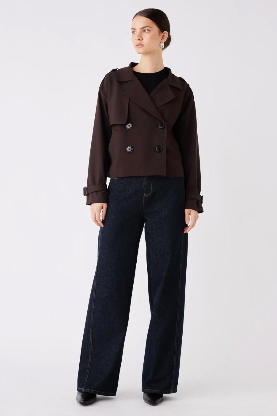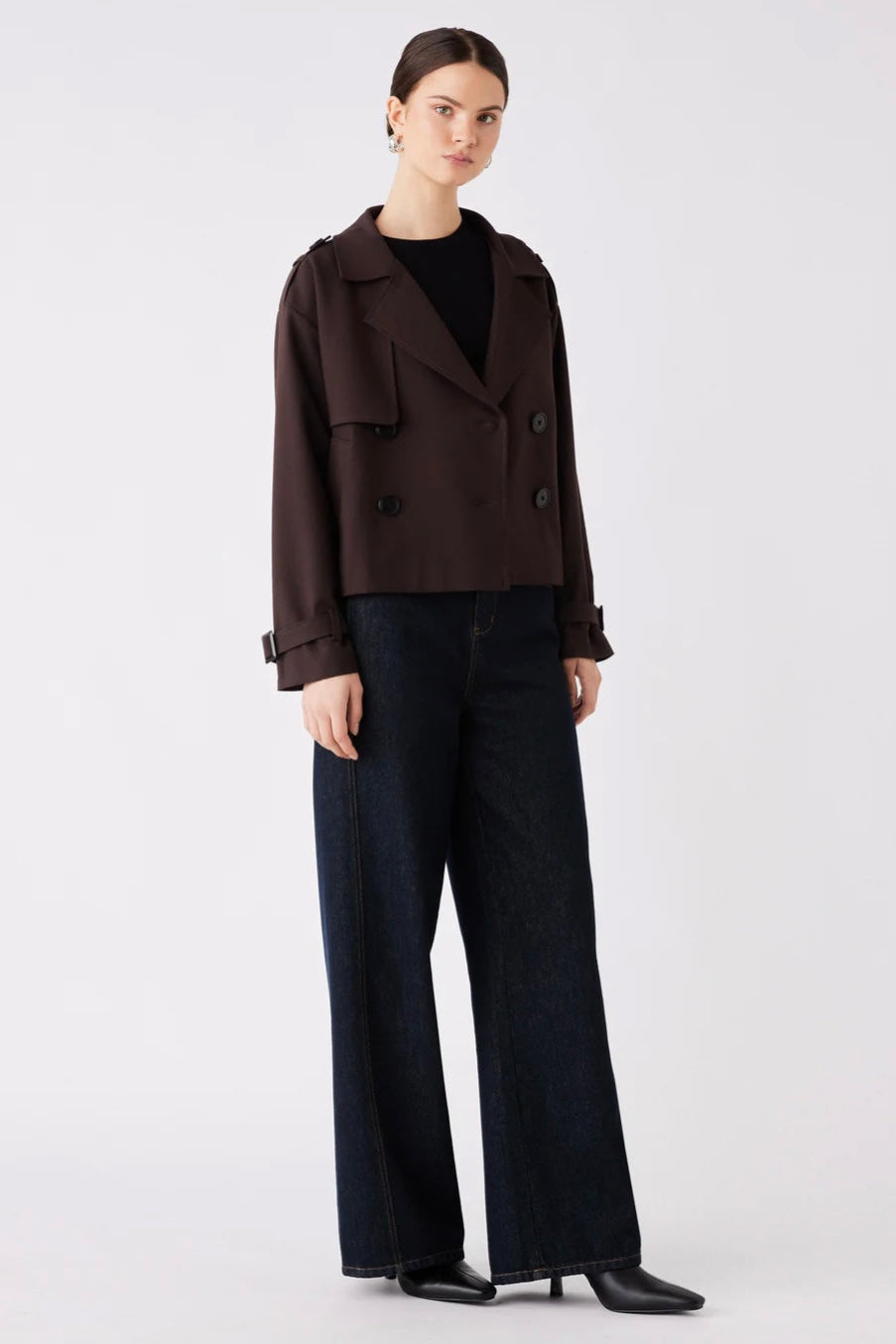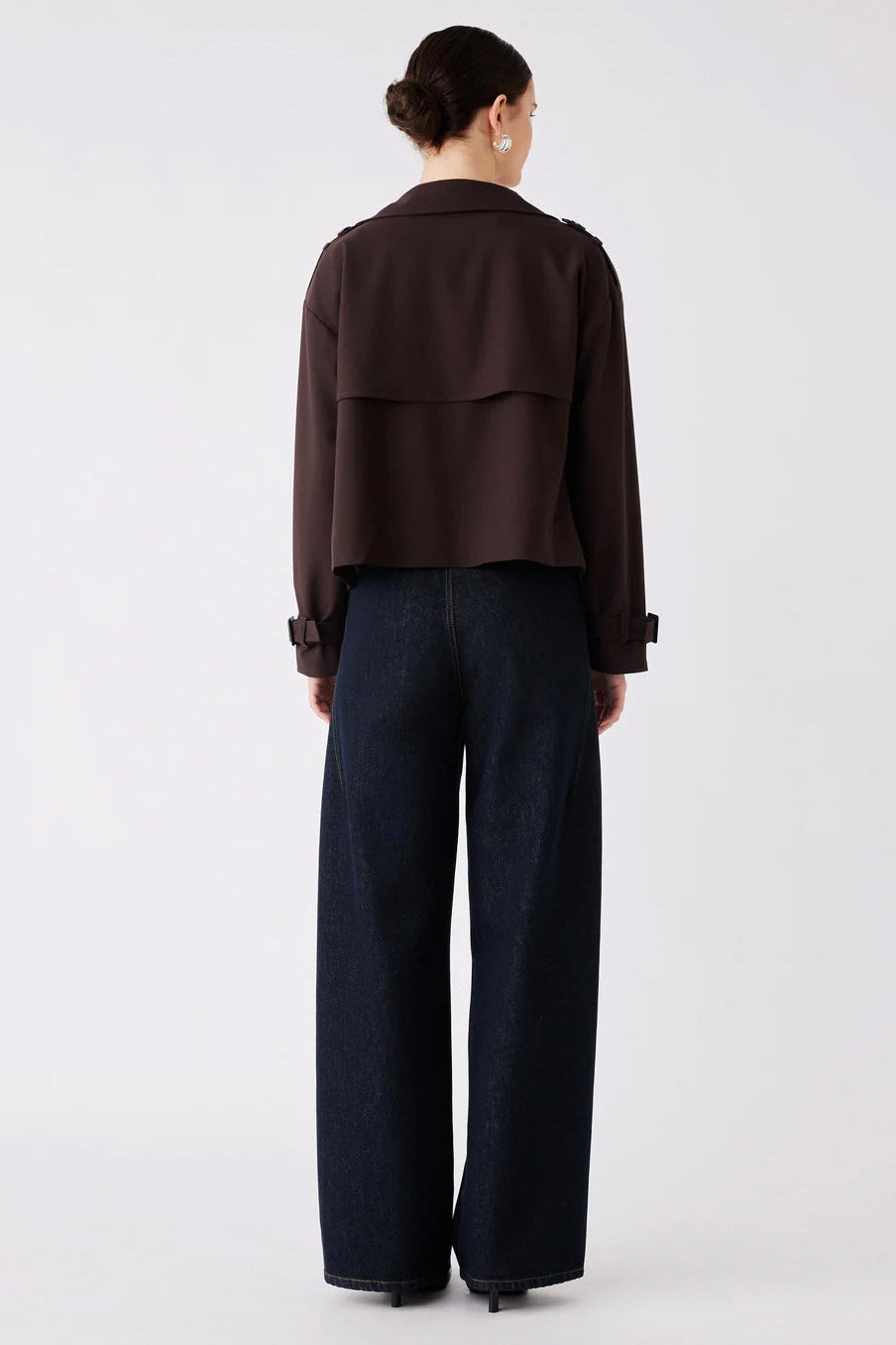 Esmaee Avenue Cropped Trench in rich chocolate