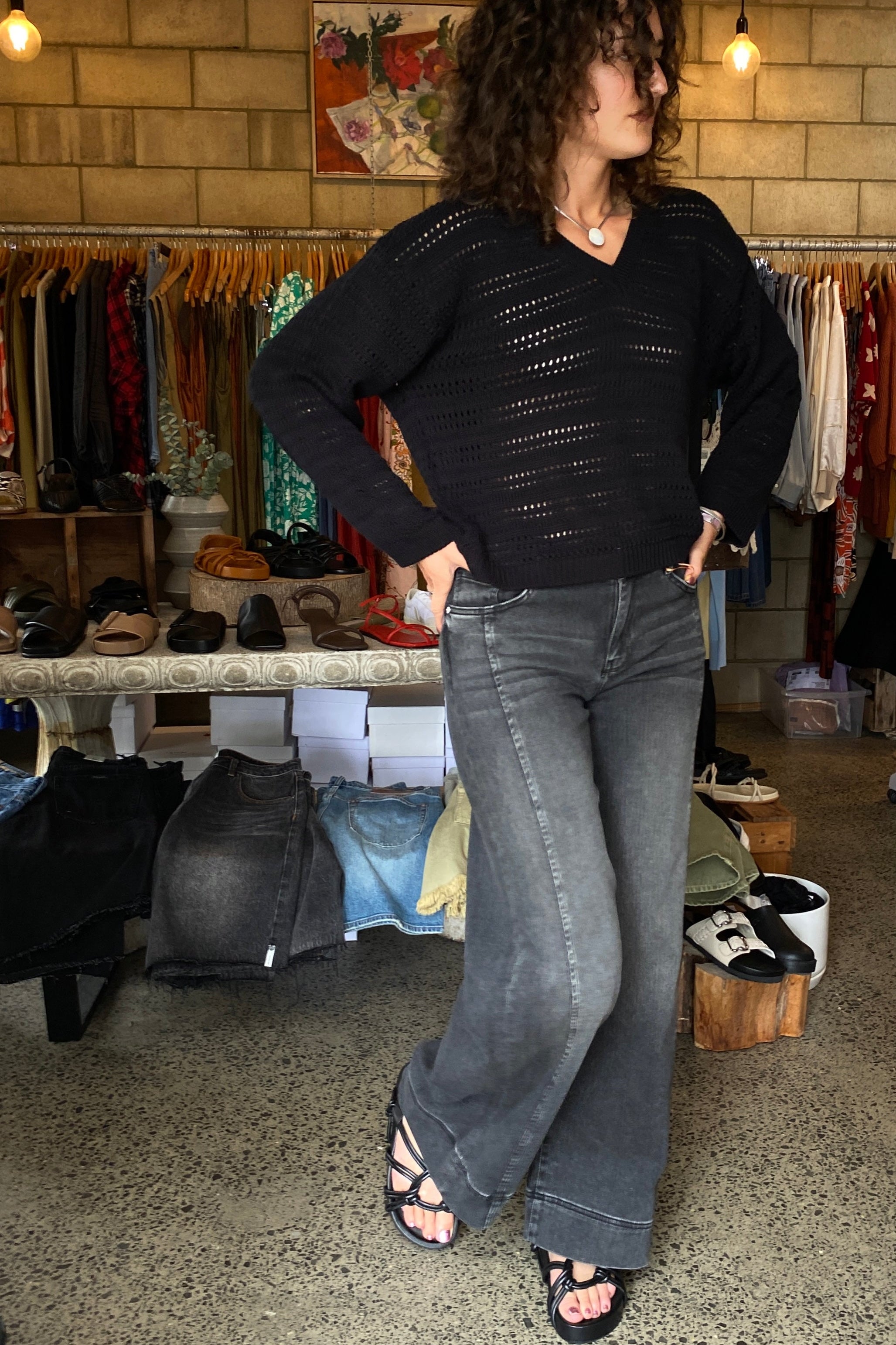 Beautifully made Tatano V-neck sweater, with a flattering V-neck and open weave fabrication, perfect for everyday wear. Taking cues from Missoni style knits for summer.