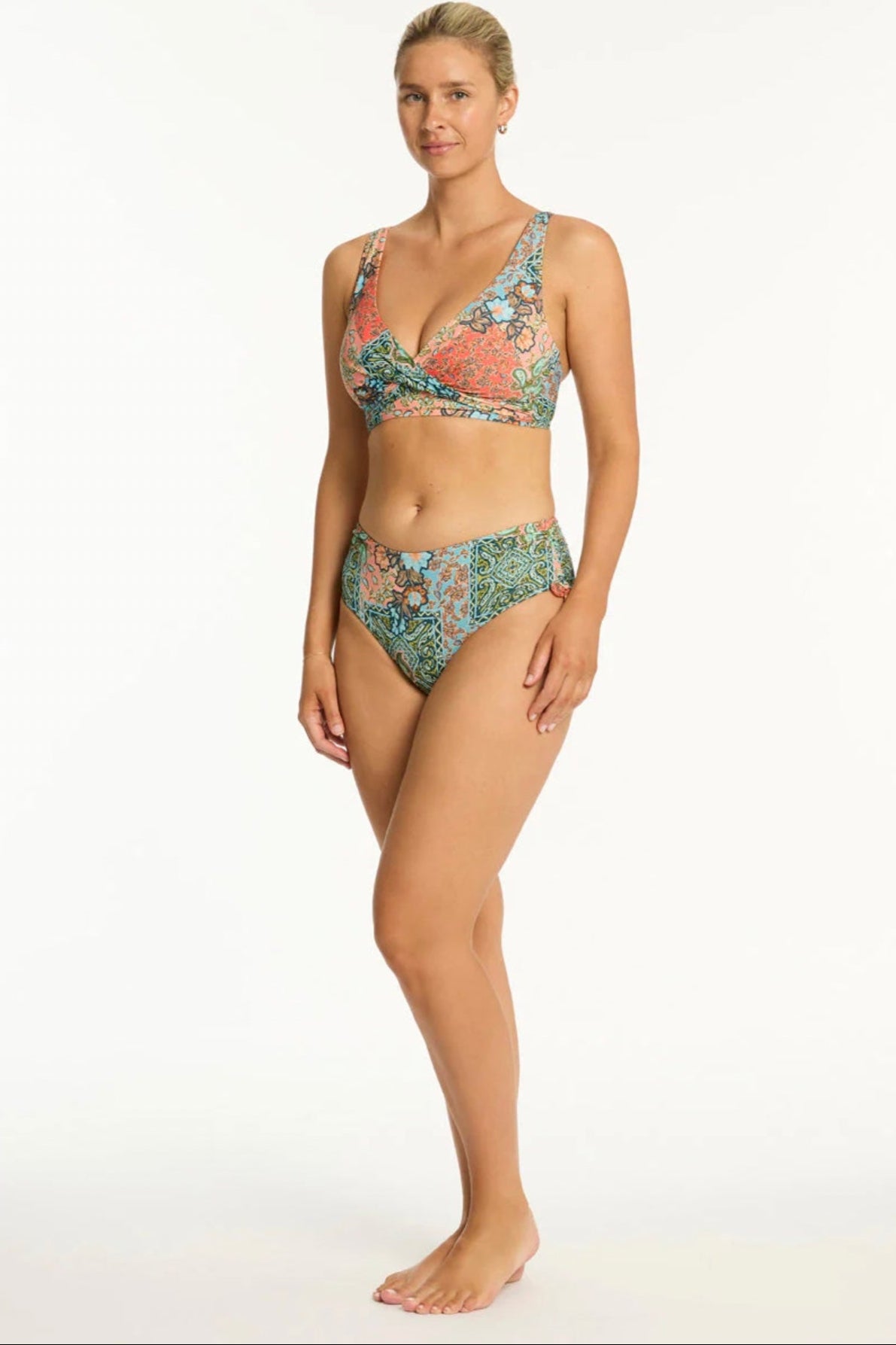 Sea Level Java Cross Front Multifit Bra Top Coral | ATAMIRA Raglan NZ