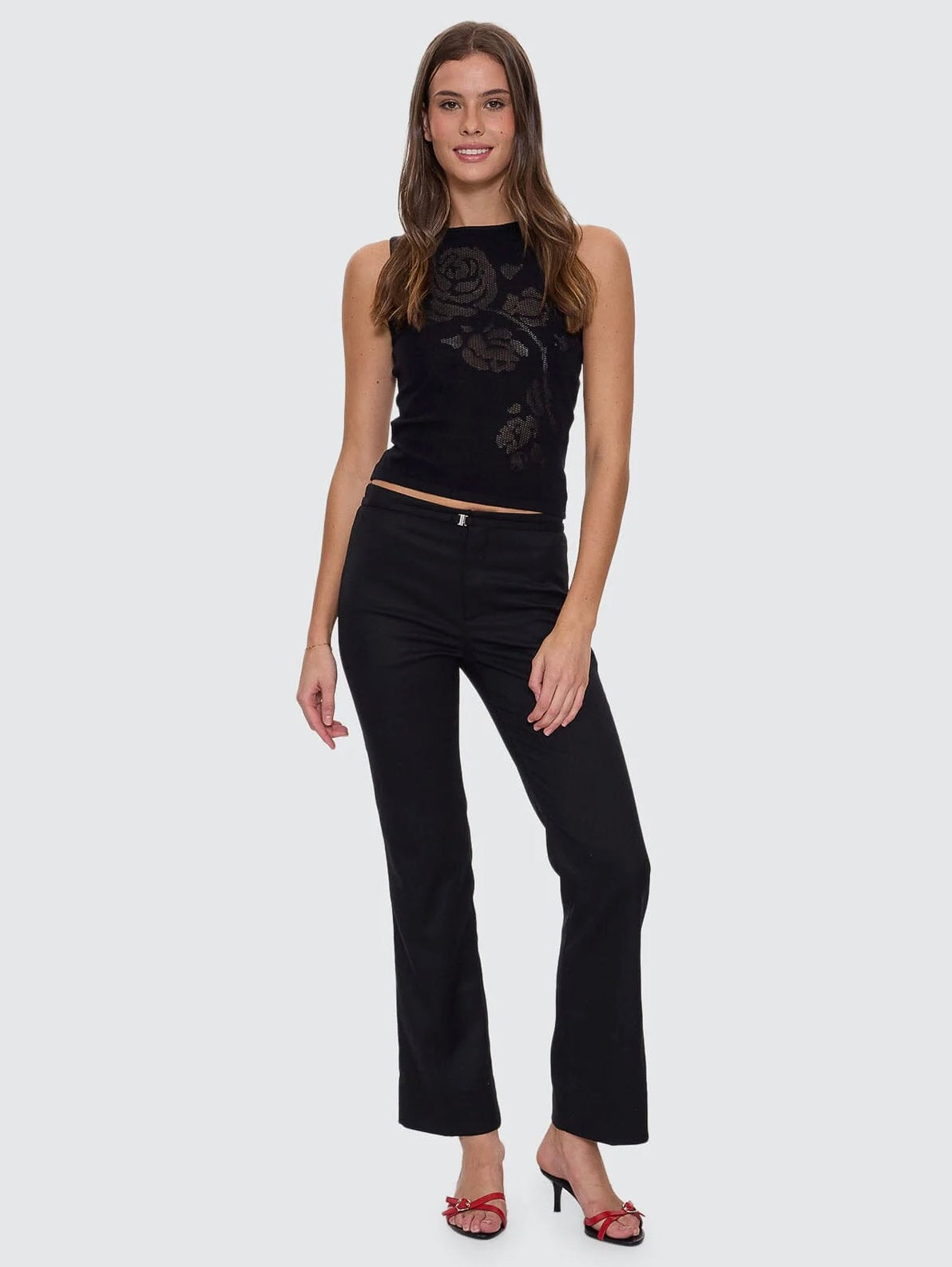 The Sabine Belted Pant in Black is where tailored precision meets timeless style. Designed with a sleek, high-waisted fit, these women's pants feature a subtle flare for a flattering silhouette that elongates the legs and a built-in belt detail for added flair. Crafted from a blend of polyester, viscose, and spandex, it offers all-day comfort and endless styling options, whether you're dressing up for the night or keeping it understated for the day.