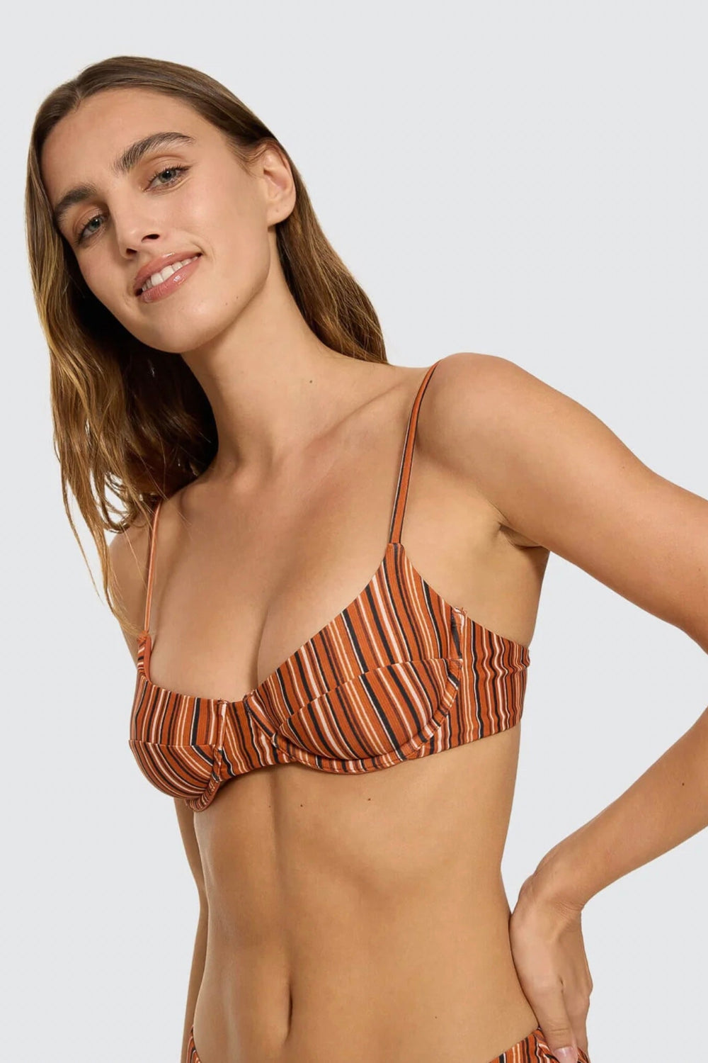 Thrills Aftersun Stripe Underwire Bikini Top Burnt Orange | ATAMIRA Online Store NZ