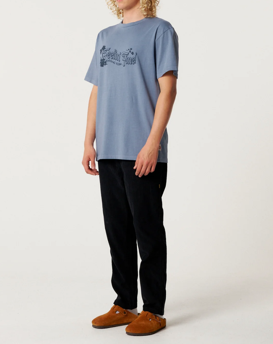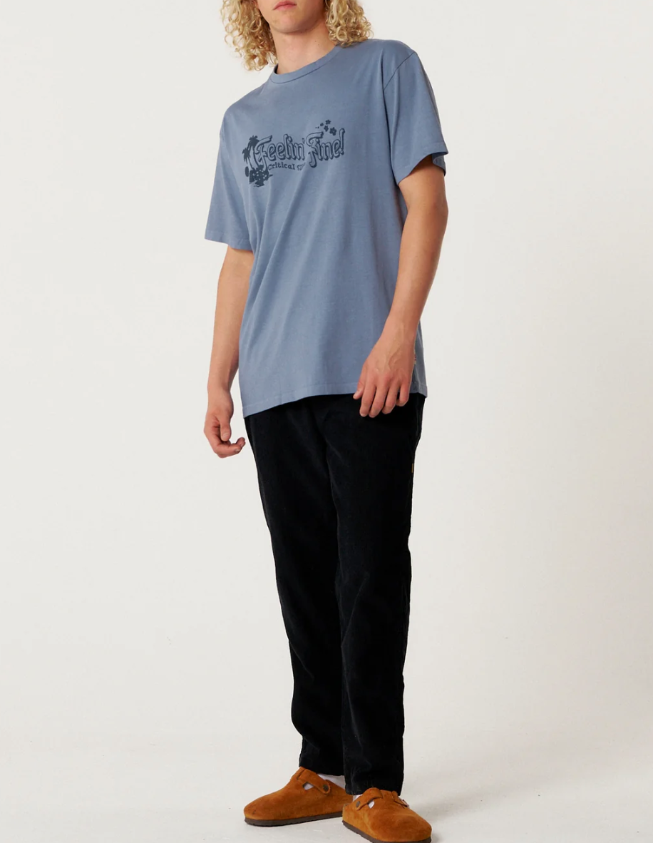 The Business Tee is cut from our 230gsm cotton singles jersey, garment dyed and washed twice to lock in shape and keep shrinkage to a minimum. It features the Business Logo lockup on the chest and back. Built on our Regular Tee block—which still runs a touch oversize—we recommend taking your usual size for the intended fit.