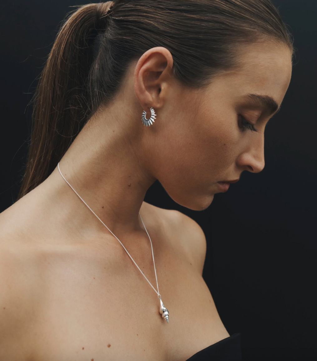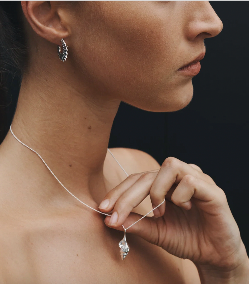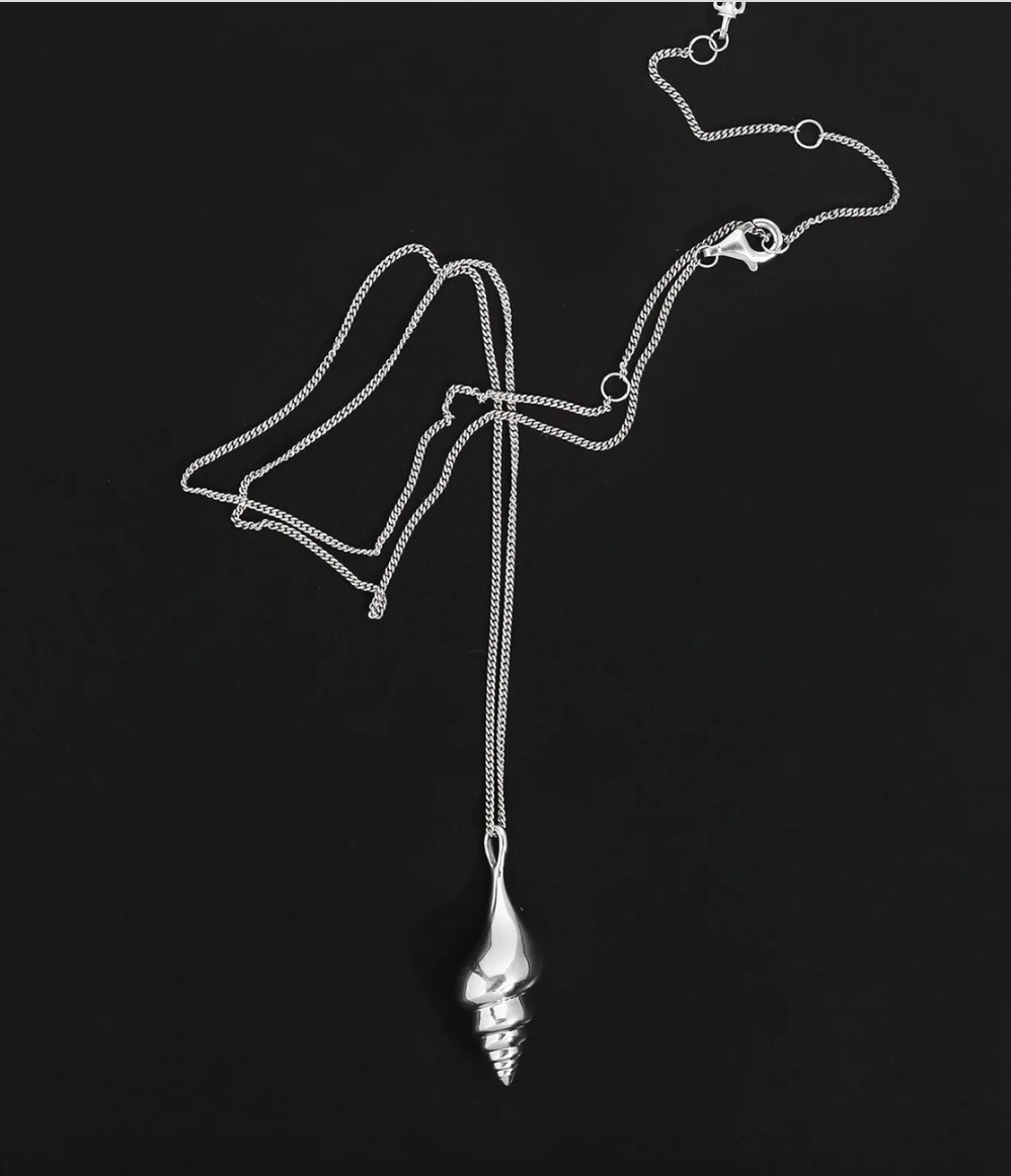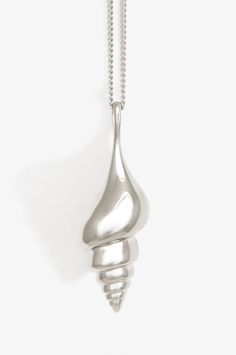 A vessel of ancient secrets, the Spire Necklace features a single sculptural shell pendant in polished recycled sterling silver, suspended from a curb chain. With its spiralling contours inspired by the sea, this pendant necklace carries a refined sense of movement and transformation.