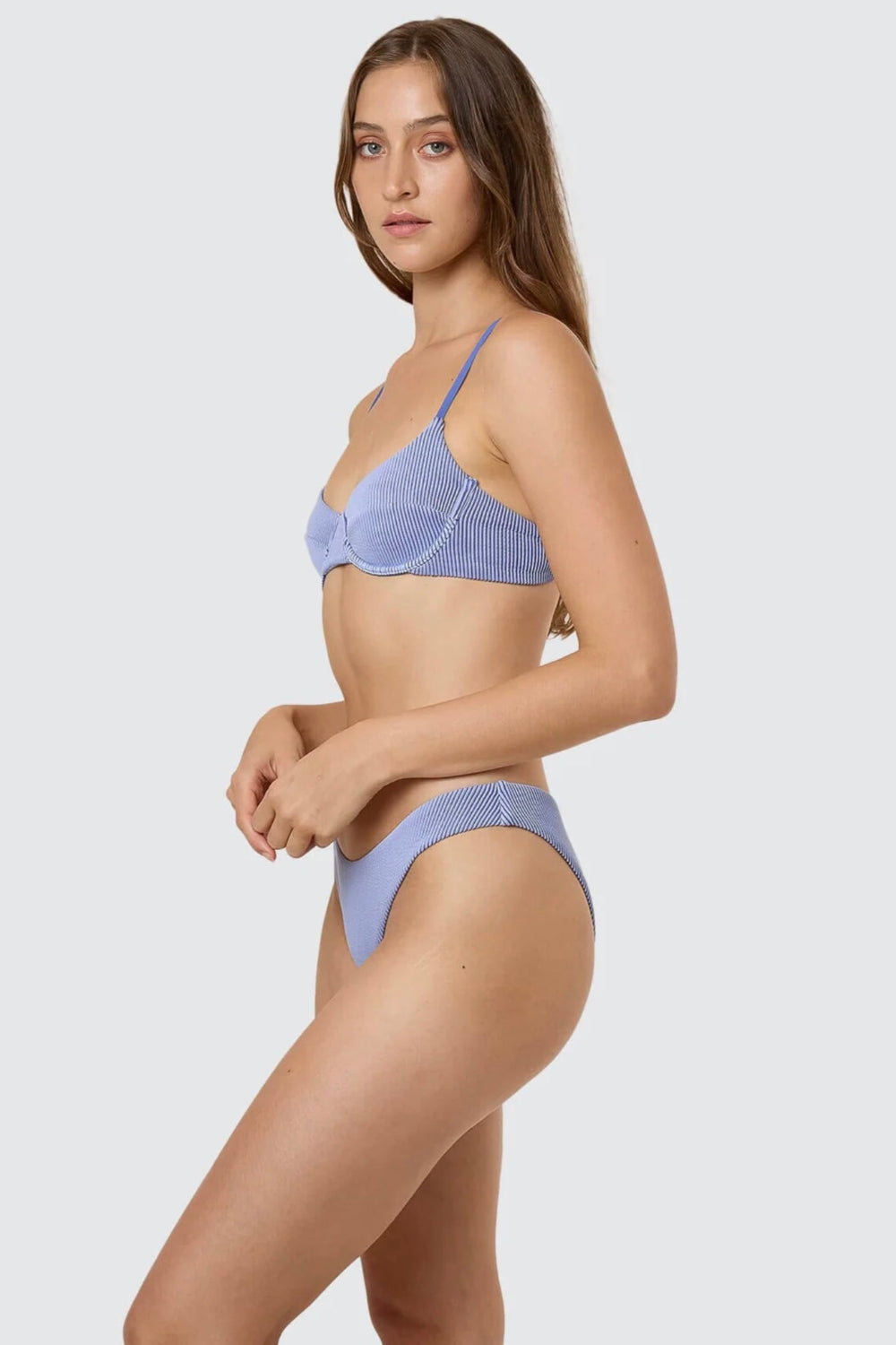 Look your beach-ready best in the Alba Rib Underwire Bikini Set in Cornflower Blue. With a structured underwire fit, adjustable straps and a flattering scoop neckline, this blue bikini top is made from soft ribbed stretch fabric with soft lining. It offers lift, shape, and comfort without compromising on edge, in a dreamy cornflower hue that gives off clean, effortless energy. A fresh offering from our Australian women's clothing swim selection, this one pairs effortlessly with the matching Alba Rib Classic Bikini Bottom.