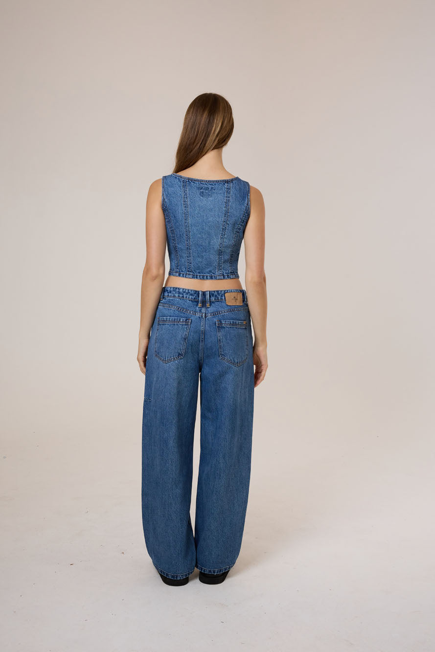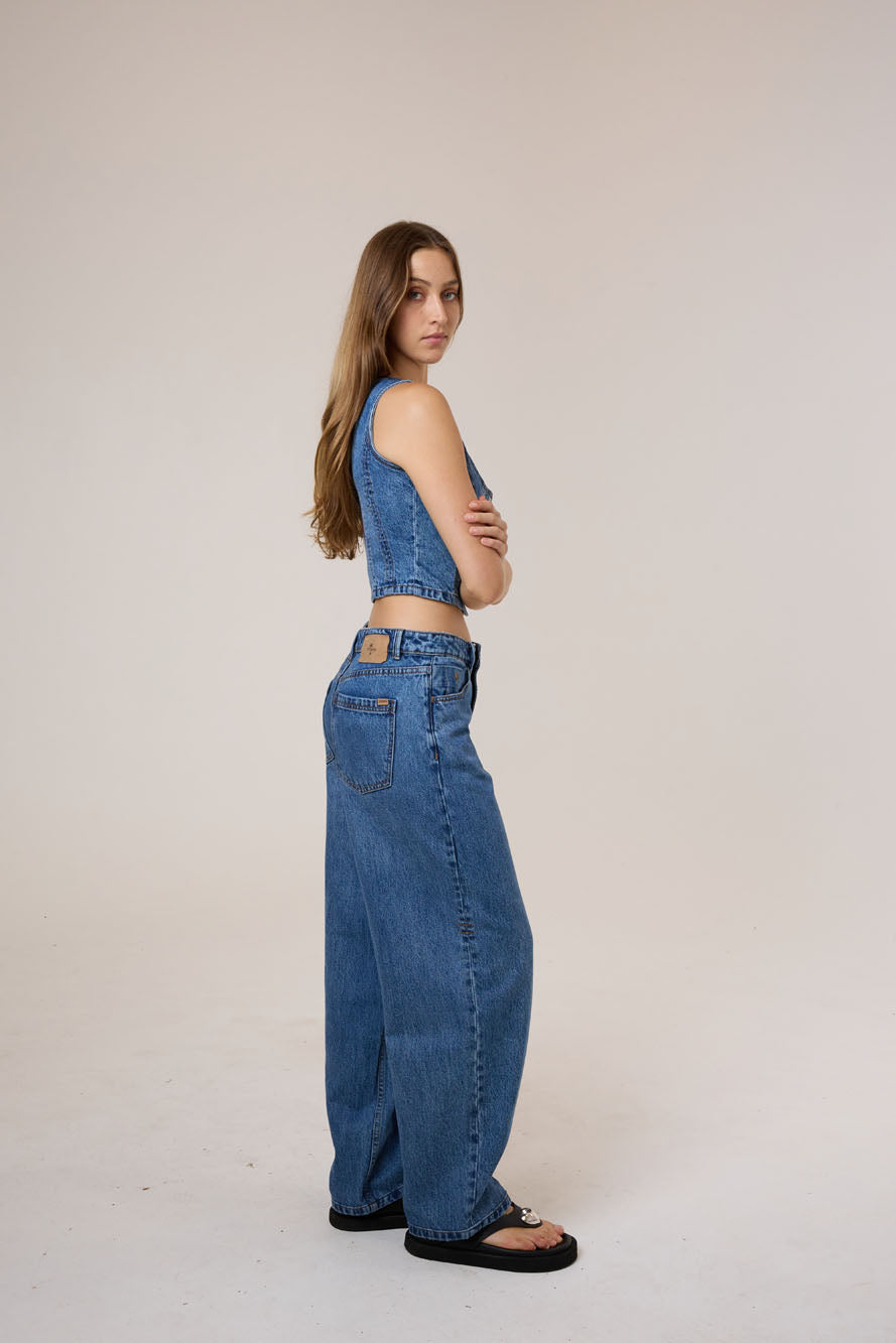 You need this top in every colour imaginable. It’s the perfect blend of comfort and style. Made from durable, mid-weight denim while offering the perfect fusion of 90s attitude and everyday wear. We recommend pairing it with the Billie Jean in Stoned Blues and your fav sneaker or boot.