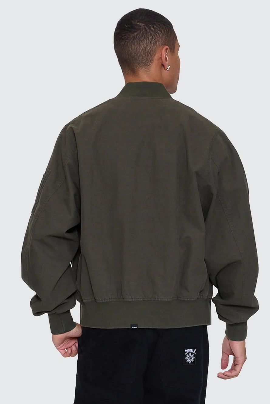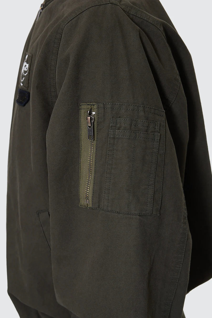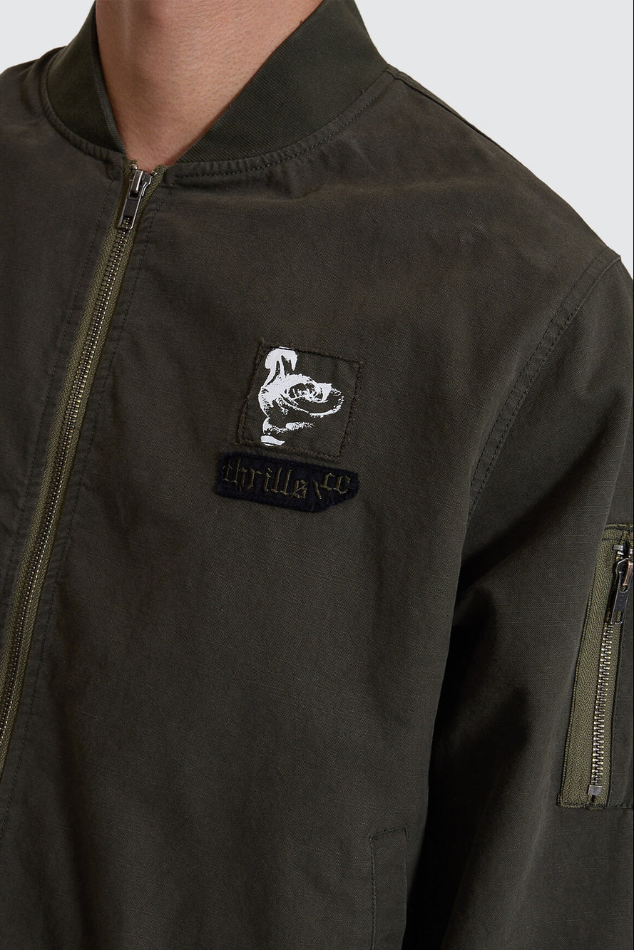 Military roots meet a street-ready edge in the Rose Brigade Bomber in Olive Night. Built from tough cotton ripstop, it delivers structure without the stiffness, featuring a classic bomber shape finished with a zip front, fully lined interior, and clean welt pockets for everyday function. Easy to layer over tees, this bomber jacket is a standout layering staple.