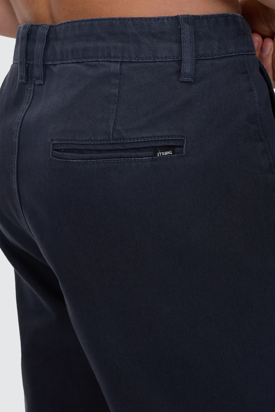Everyday structure with a slacker edge, the Slacker Chino Pant in Petrol brings a clean, tailored look without losing the relaxed Thrills attitude. Cut from premium cotton denim, its sturdy enough for daily wear but comfortable straight off the rack. The fixed waist, zip-and-button fly, and belt loops keep things classic, finished with a back welt pocket for a sharp, elevated touch. A dependable option in men's clothing, this chino pant is a versatile staple, easy to dress up with button shirts or styled down with oversized tees.