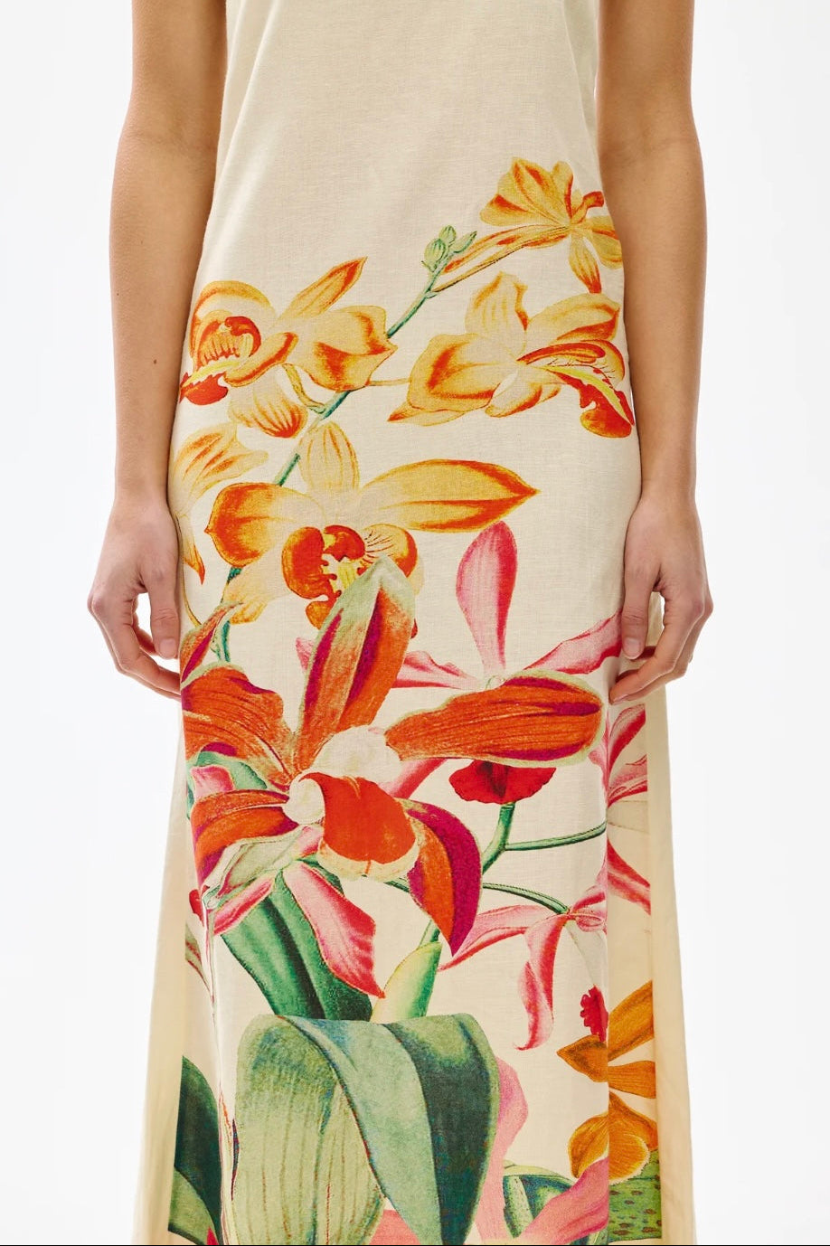 Recut in our Positano print, it captures the vibrance of summer with its bold floral print in sunlit shades of yellow, orange, red, and pink.