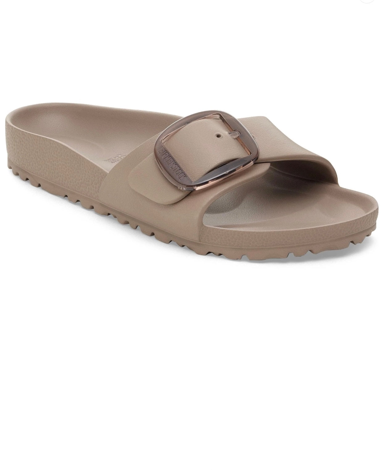 This is a new and modern interpretation of the BIRKENSTOCK classic Madrid. This version features our popular Big Buckle made from a stainless synthetic material and makes an impression with its durability and minimalist design. Modeled on the cork sandal, it is made from the ultra-lightweight and highly flexible synthetic material EVA. The high-quality, odor-neutral EVA has been tested for harmful substances and combines numerous positive attributes: it is very light, highly elastic, shock-absorbent, water-resistant, and skin-friendly.