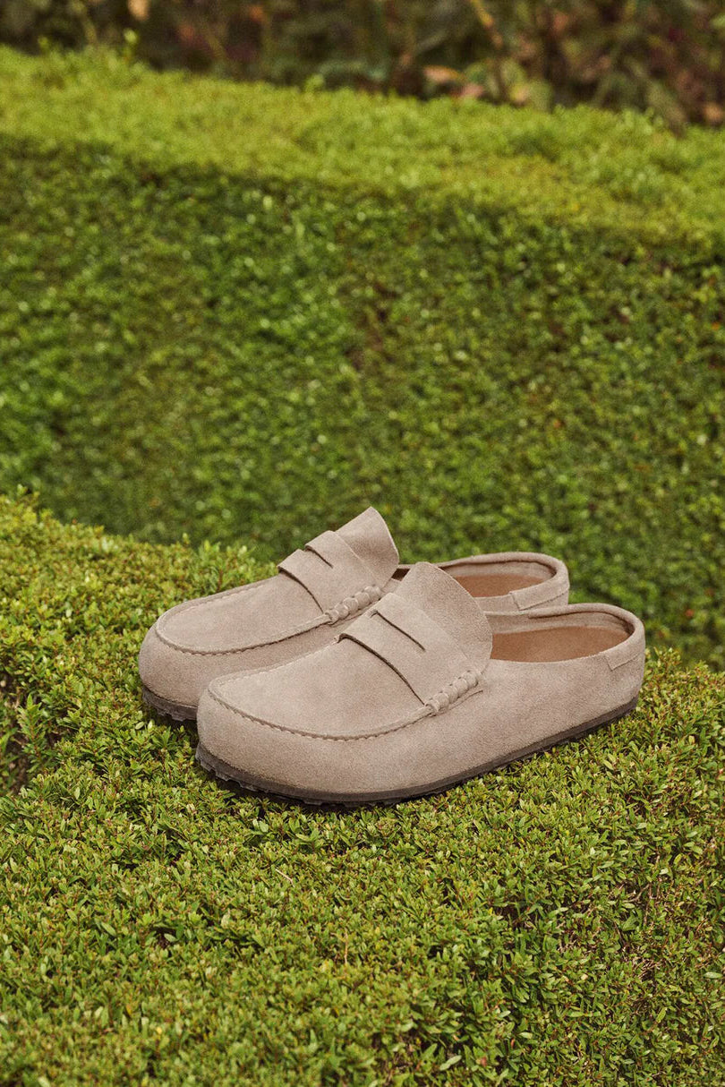The BIRKENSTOCK Naples Wrapped is the closed version of the popular semi-open Buckley clog. The moccasin style with striking stitching lends this sandal a distinctive and masculine appearance. Thanks to its two components, the sole promotes a firm and comfy footing. It comprises a cushioning midsole made from EVA and an outsole made from genuine rubber. Its natural design is down to the upper made from especially soft suede, which hugs the foot like a second skin.