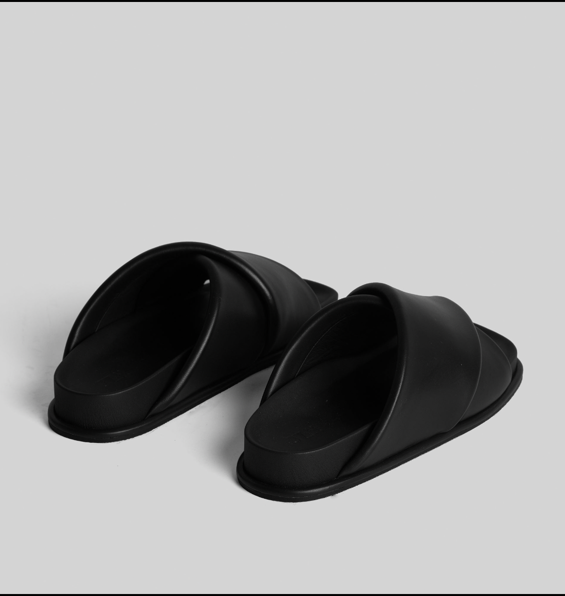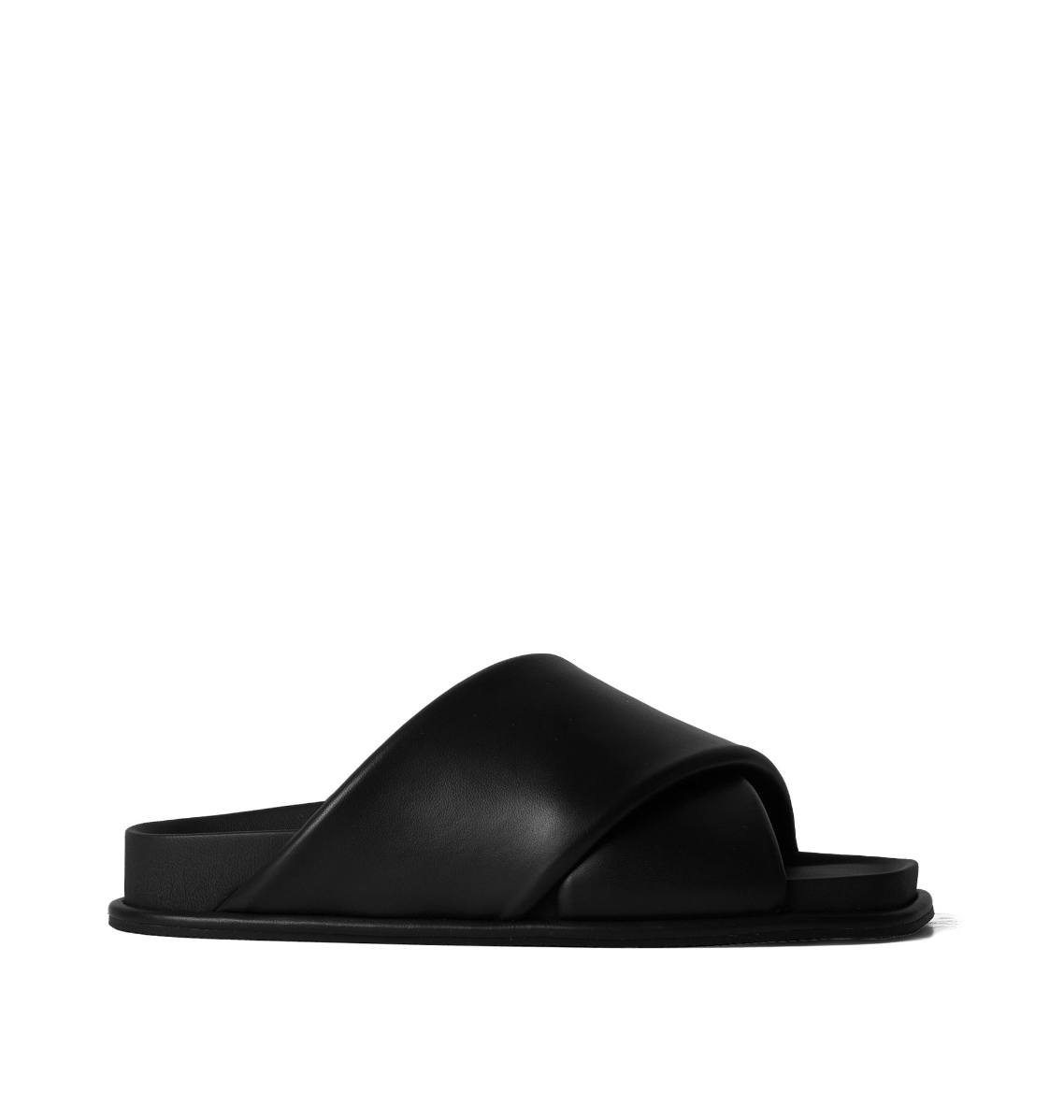 The Carr Slide in black by JVAM is minimalism done right. Made with a soft Sheep Nappa upper that wraps comfortably across the foot, this slip-on sandal blends everyday ease with a refined finish. A gently padded footbed and squared-off toe add to its laid-back yet elevated appeal. Ideal for spring and summer days when comfort matters but style still counts.