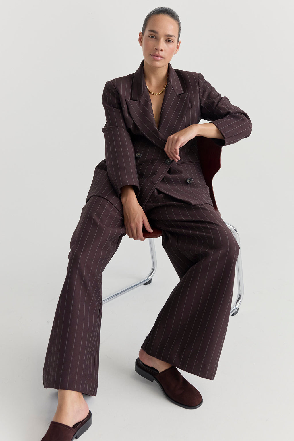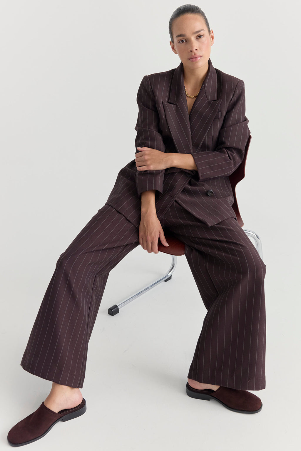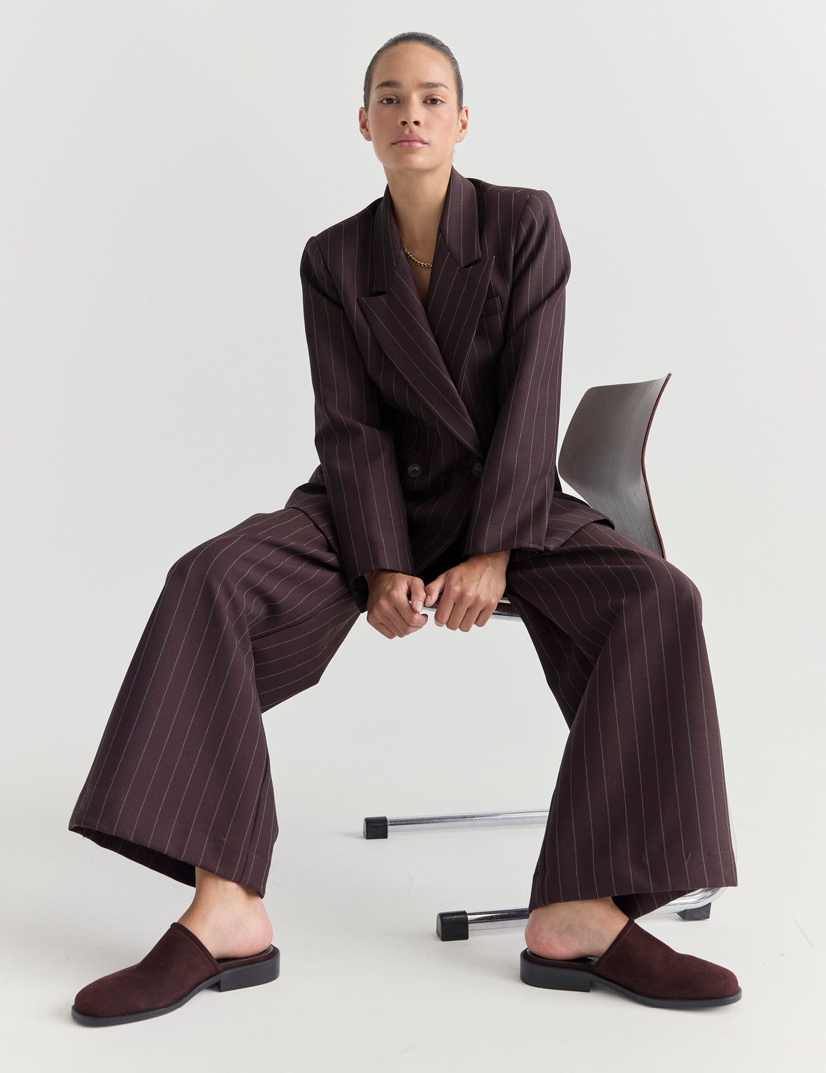 La Tribe Mille Mule in Chocolate Suede is a sleek and minimalist design mule in a deep complex raisin shade leather suede.