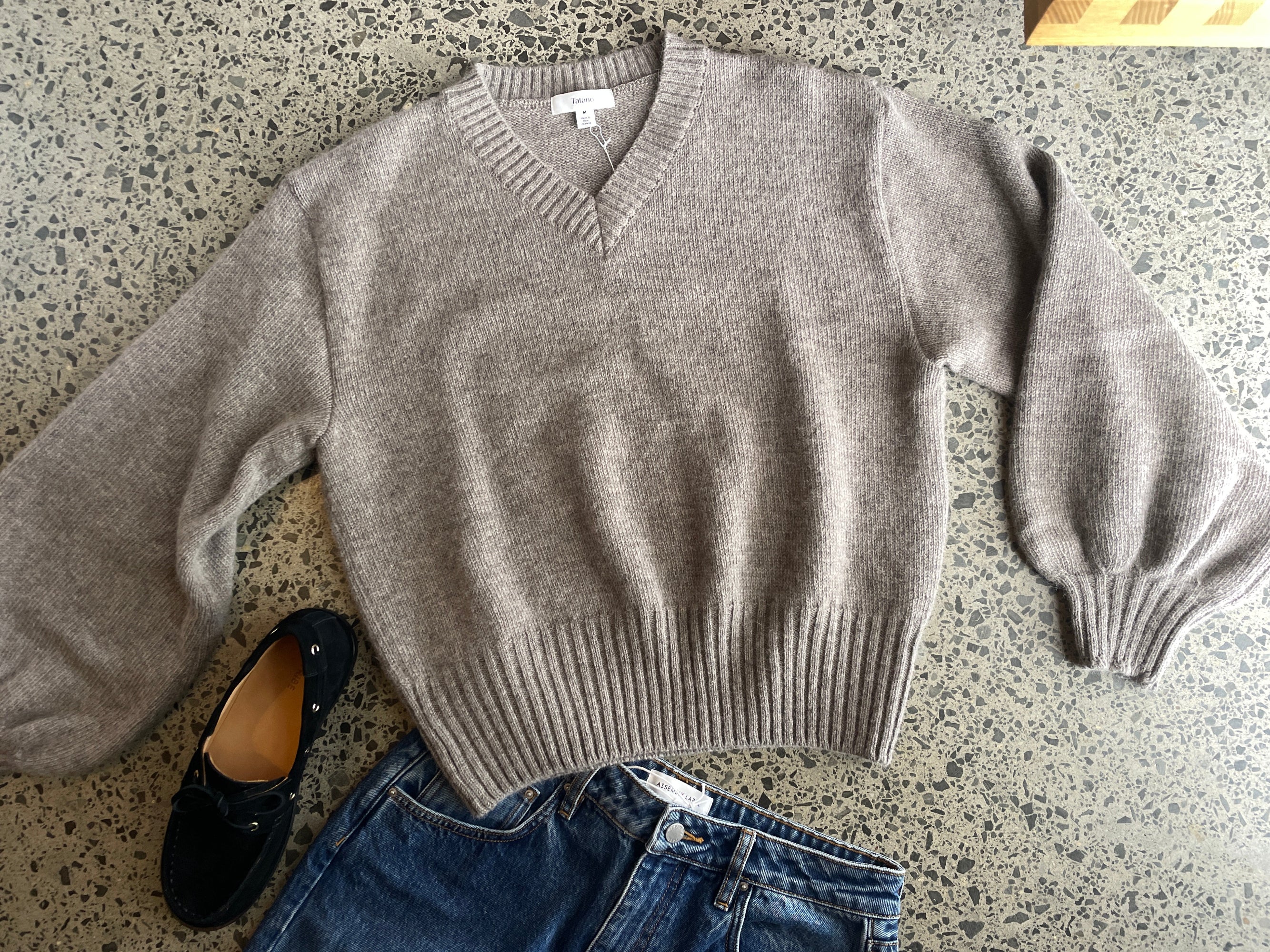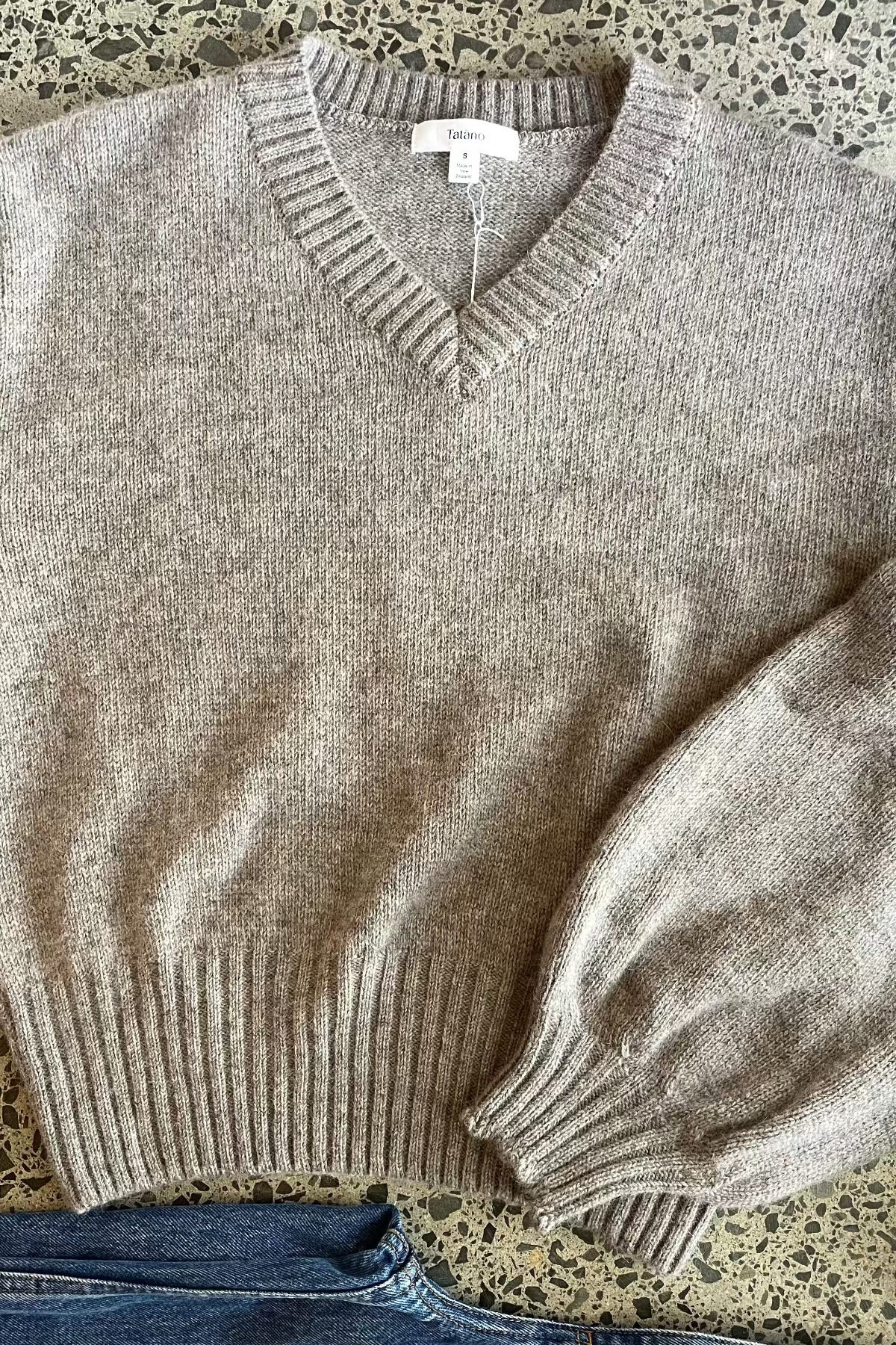 The Celia V-Neck Sweater by Tatano is the epitome of effortless luxury. Crafted from a blend of Angora and Merino, this knit delivers lightweight warmth with a beautifully soft handle. Mocha is a warm toned light brown grey.