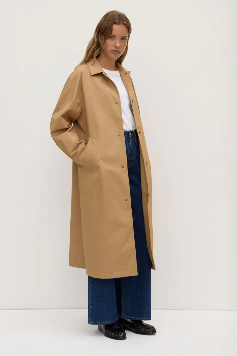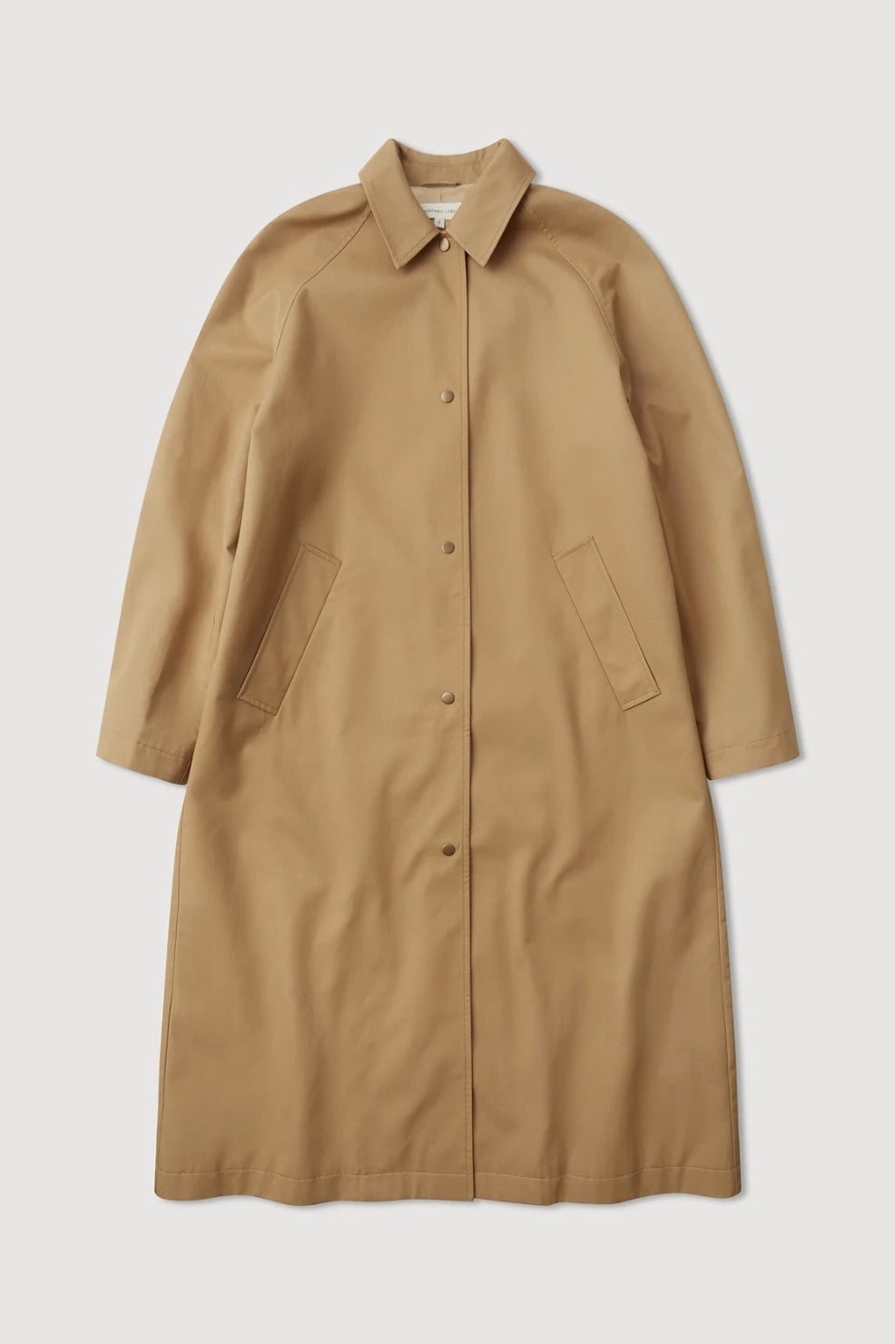 Crafted from a water-resistant cotton fabrication, this car coat features a single-breasted button-down front and wide raglan sleeves to allow for easy layering.