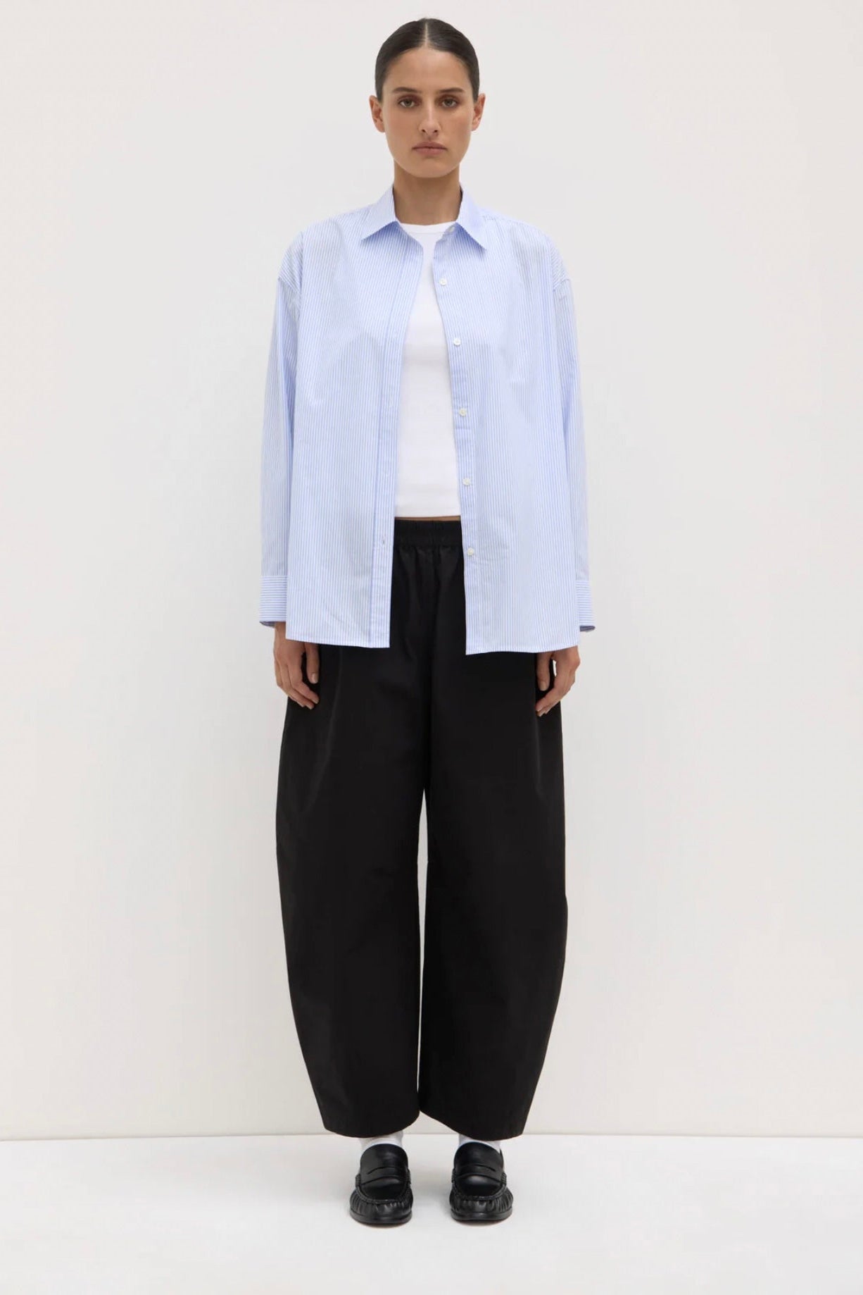 Crafted from a textured cotton, the Lola Barrel Leg Pant offers a voluminous fit on the leg which flares out at the knee and tapers at the ankle. Designed for a relaxed look, it features an elasticated waistband, side pockets and seam detailing at the knee and ankle.