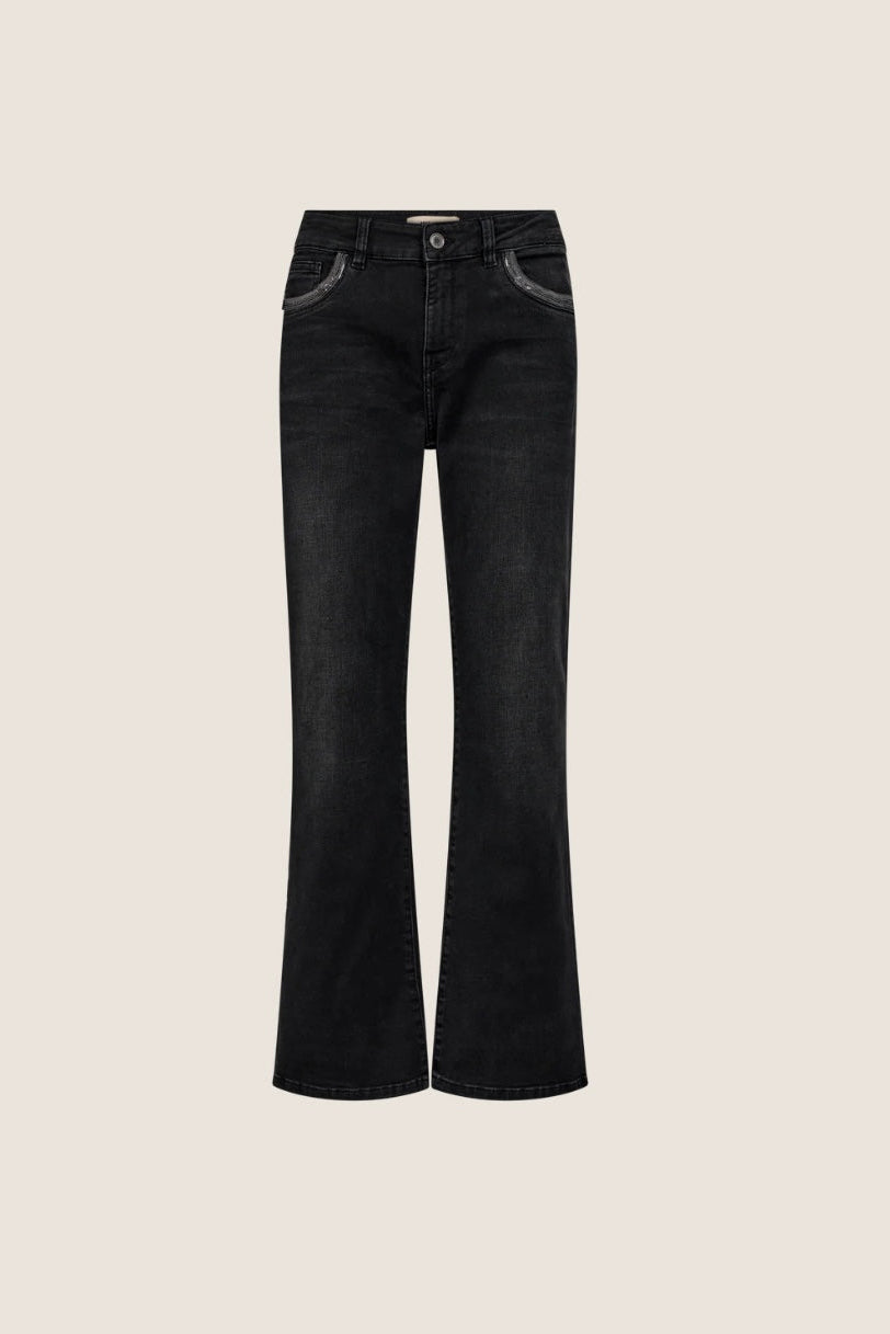 These chic high-rise jeans are designed in a flattering flare fit, offering both elegance and comfort. Crafted from a soft cotton blend with a hint of stretch, they provide all-day wearability. The stylish pocket decorations and dark wash make them a versatile choice, pairing effortlessly with everything from cosy knits to sleek silk tops and structured blazers.
