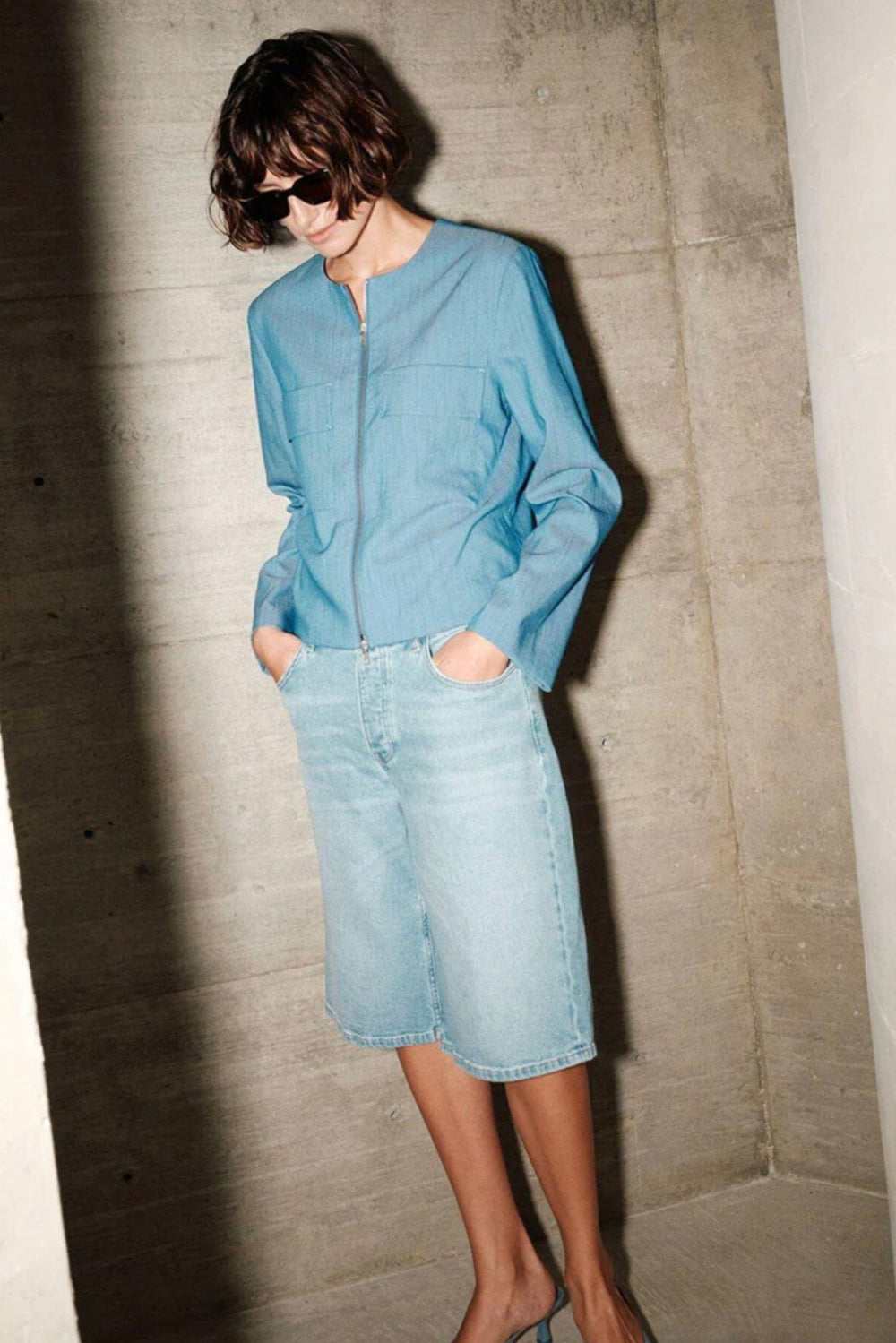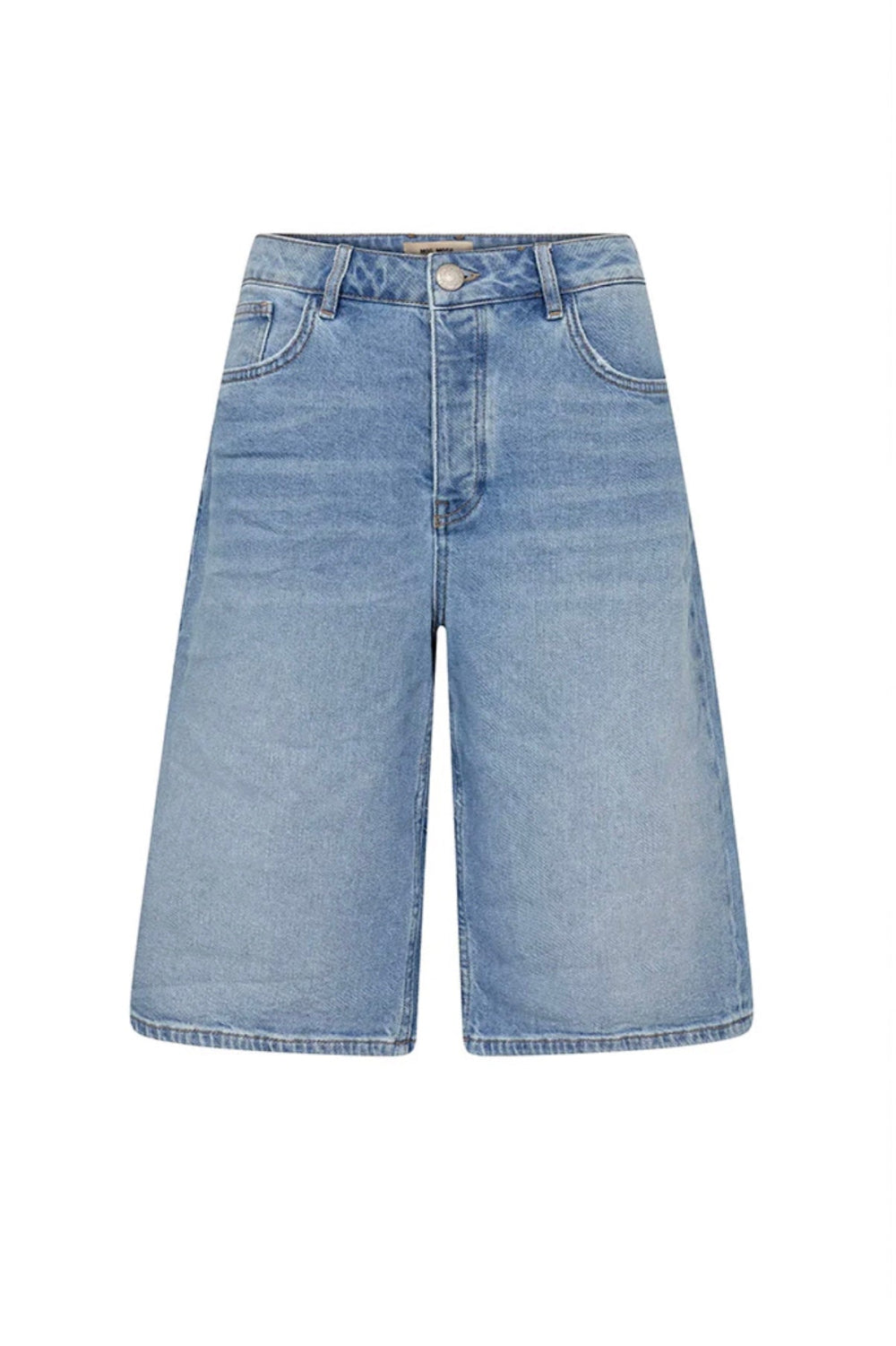 These denim shorts are crafted from denim in super soft cotton with a hint of stretch. The fit is relaxed, and they are designed with a mid-rise. The trendy knee-length cut gives them a cool and carefree vibe. The back features cutlines below the waistband and darts at the knees, adding a touch of vintage appeal. Tuck in a blouse or a casual tee for an effortless summer look.