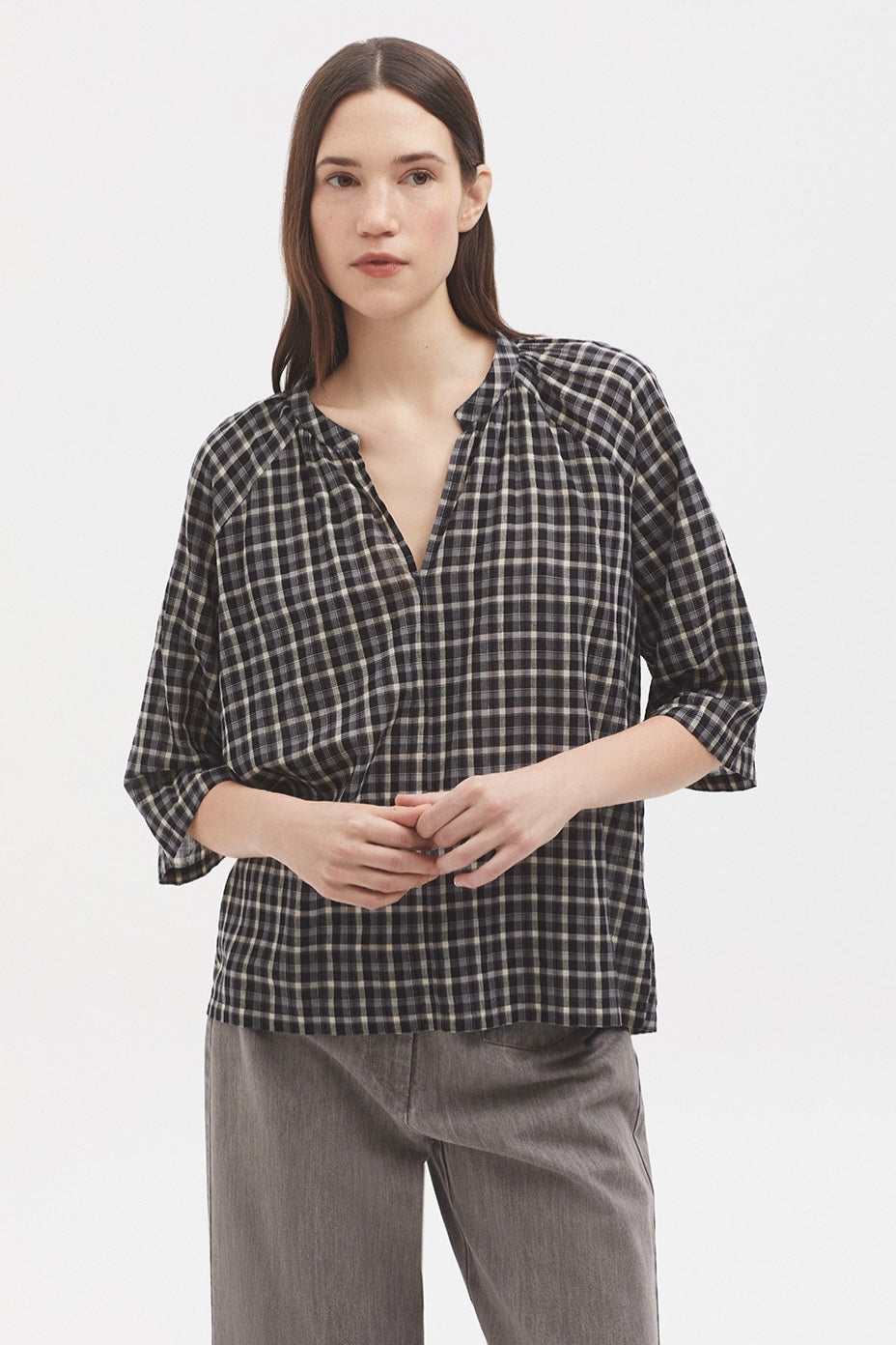 Pacific Checked Blouse Black