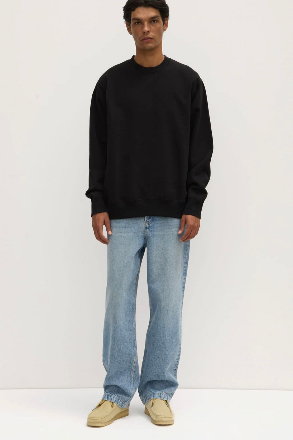 Relaxed fit mens crew neck sweater, with ribbed detailing on neckline and sleeves.