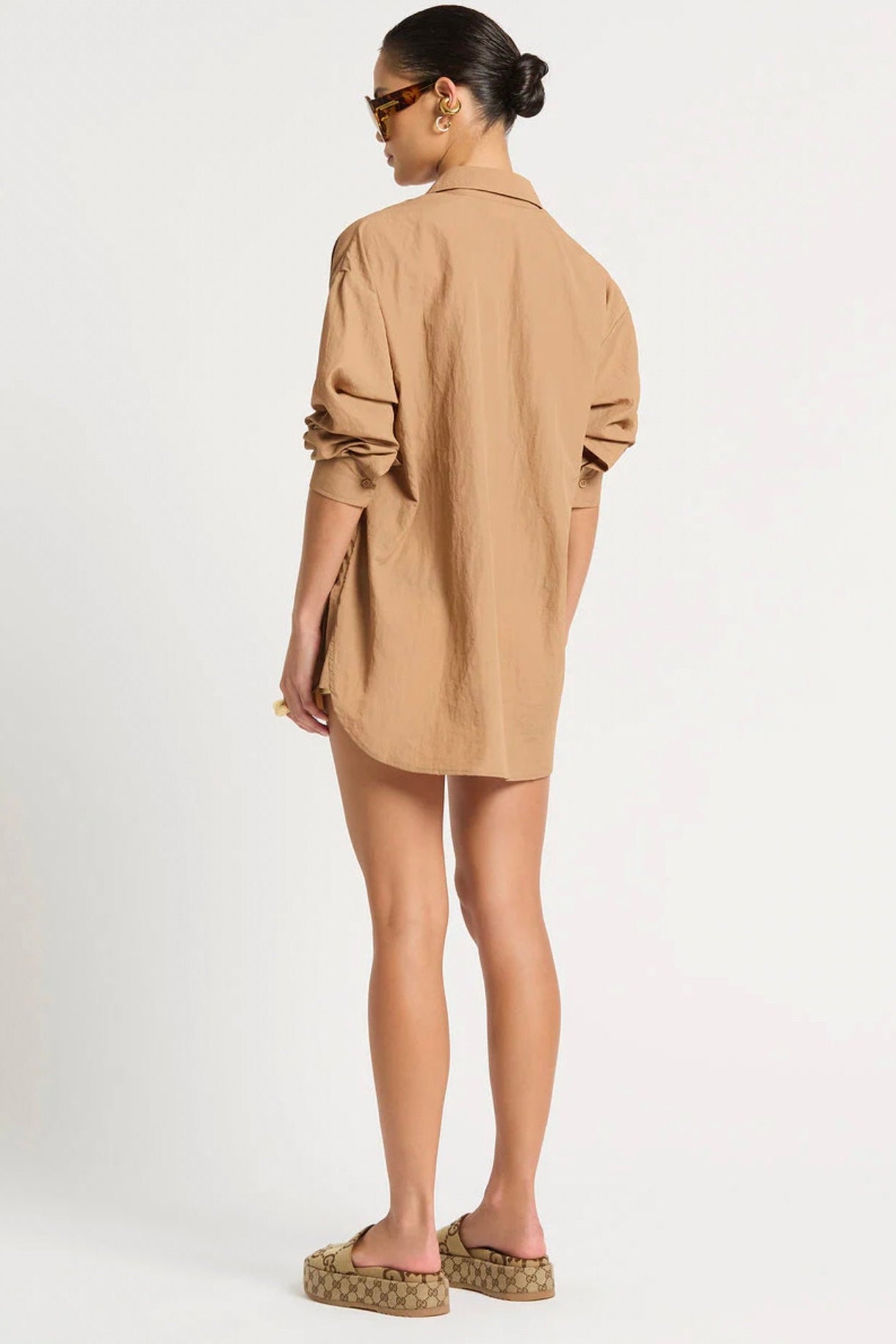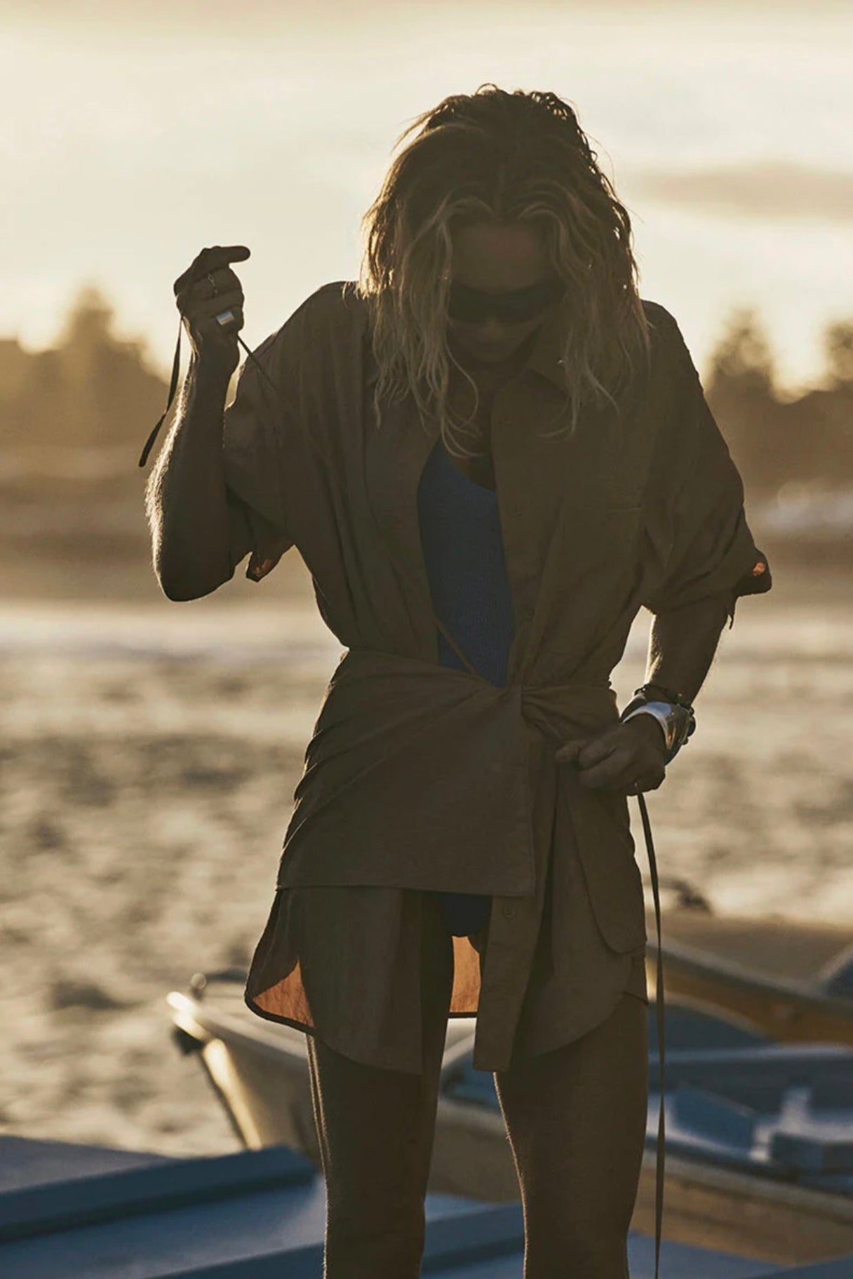 Hazel Shirt in Iced Coffee Spray blends high fashion edge with laid-back Australian cool, designed for effortless layering and ultimate versatility.