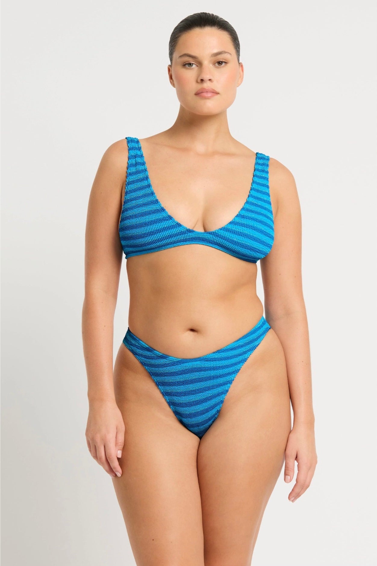 The Scout is our must-have crop. Featuring a scoop plunge neckline and a low back, this style medium to full bust support thanks to its wide shoulder straps. Handmade + designed in Sydney from The Authentic Crinkle™.