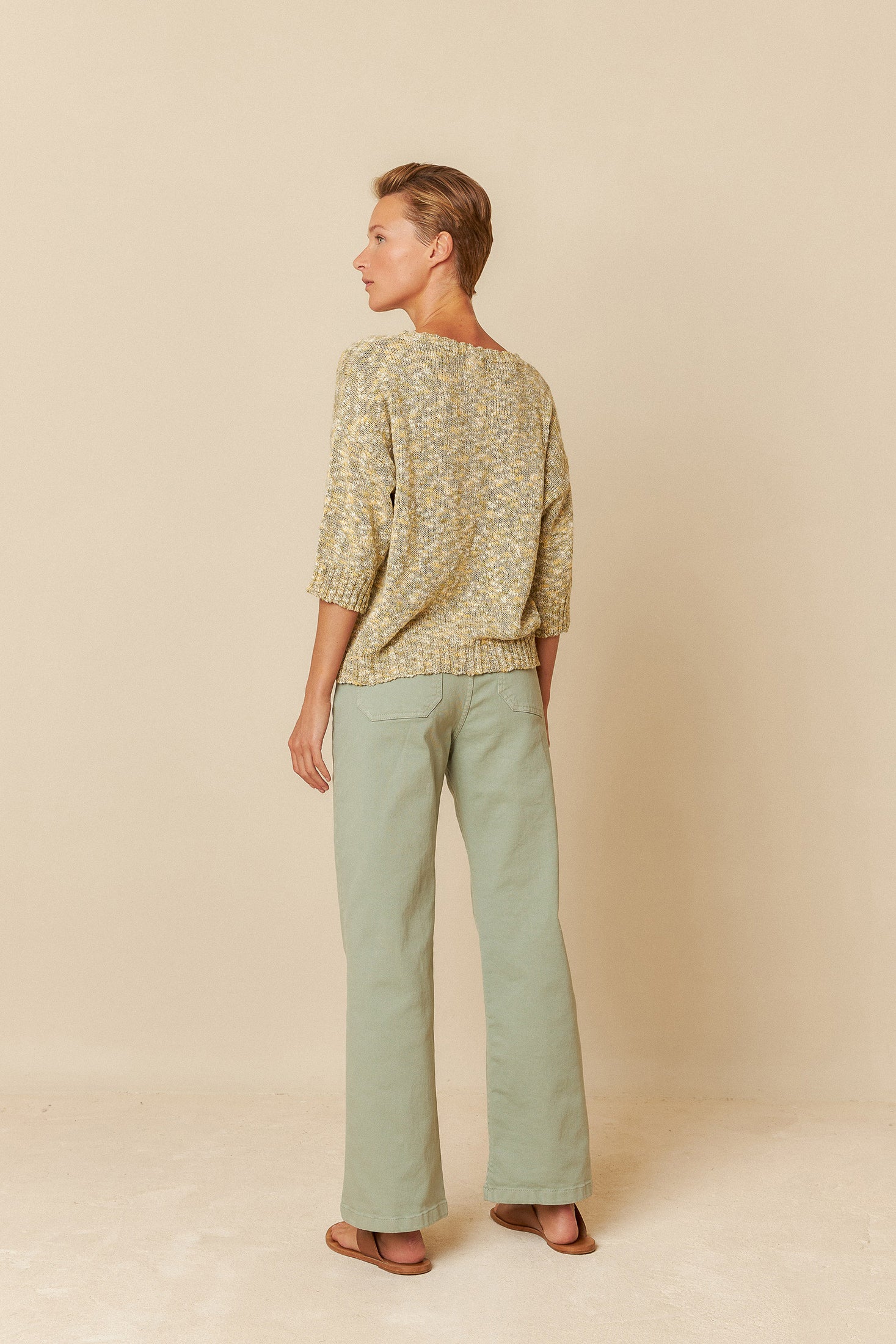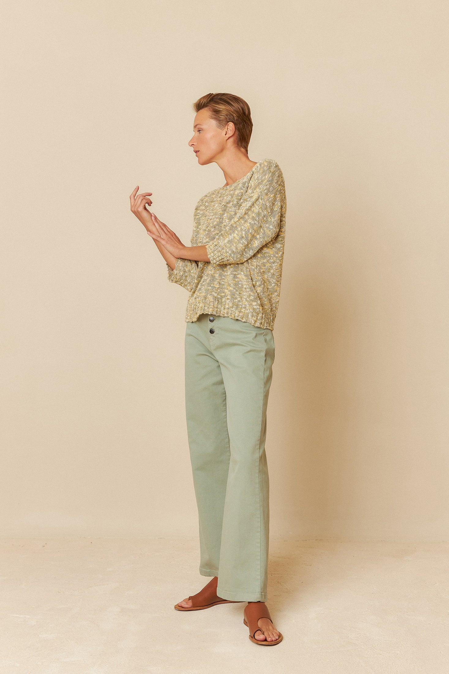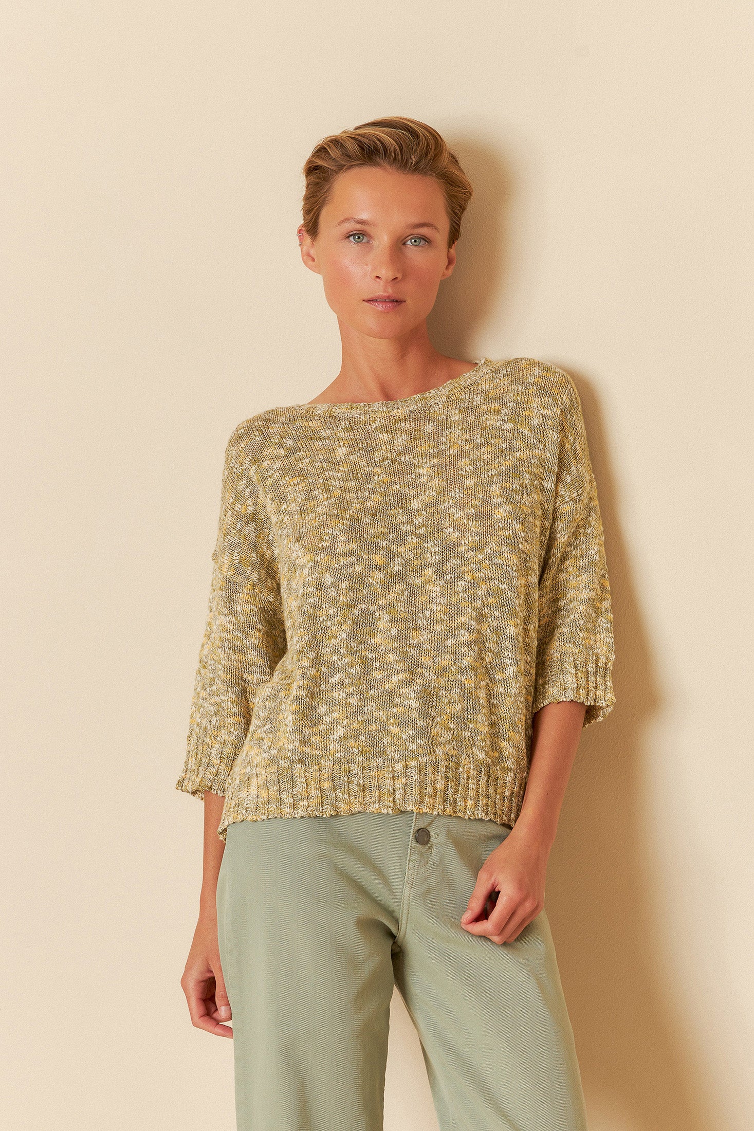 • Dropped shoulders and 3/4 sleeves.
