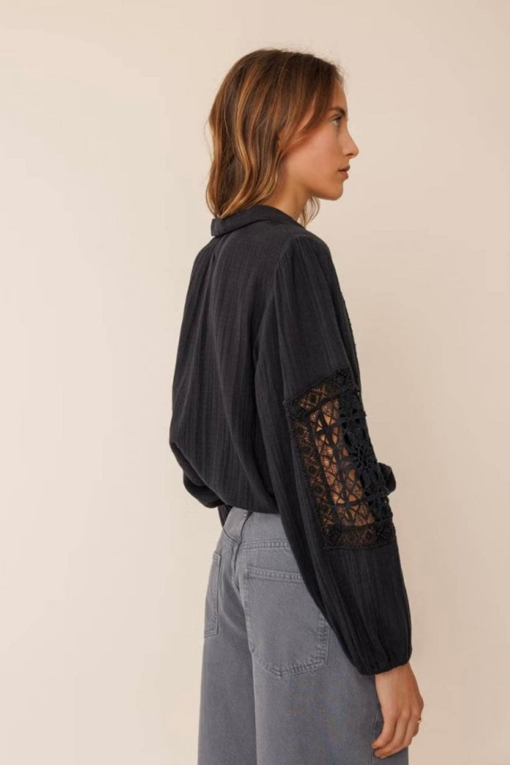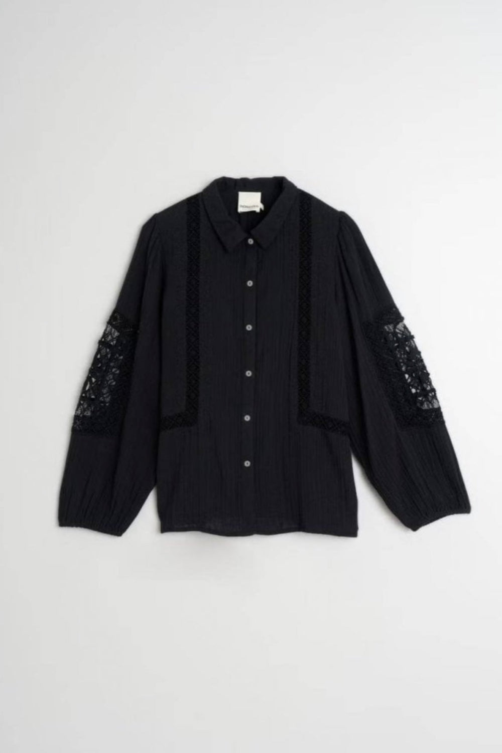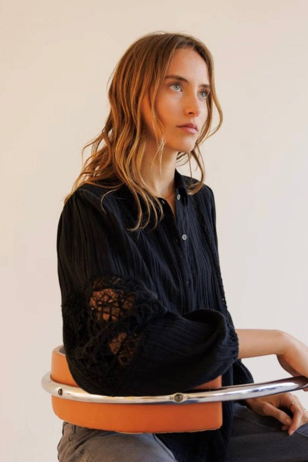 The double gauze cotton shirt is going to be a must-have this season, with its lace details inserted in the sleeves and waistband, as well as a relaxed fit.