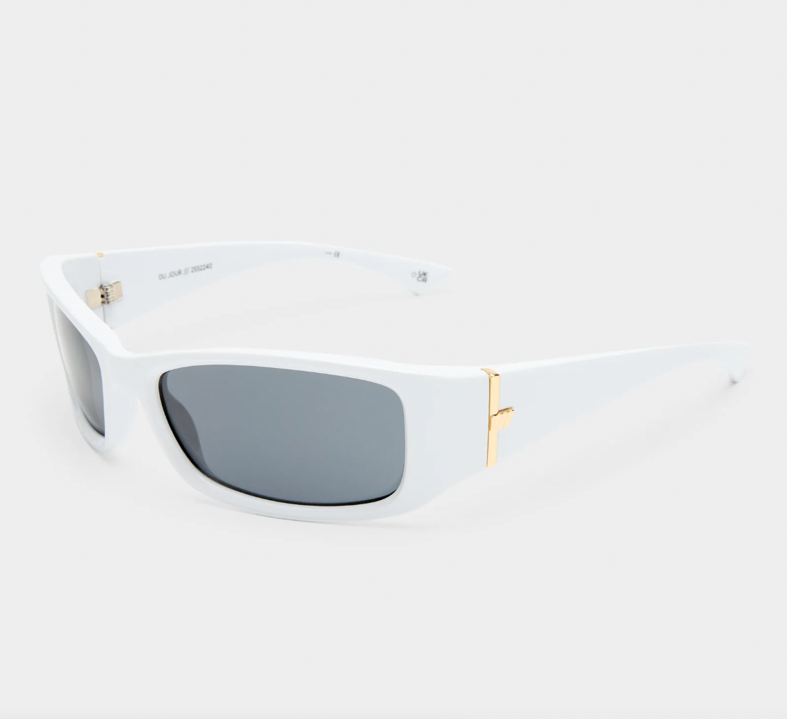 A refined essential with a subtle nod to early 2000s styling, DU JOUR is a modern take on the wraparound silhouette. Designed for all-day wear with a lightweight, sleek, and contoured fit, this frame features streamlined temples and signature Le Specs vertical pinstripe hinge inlay