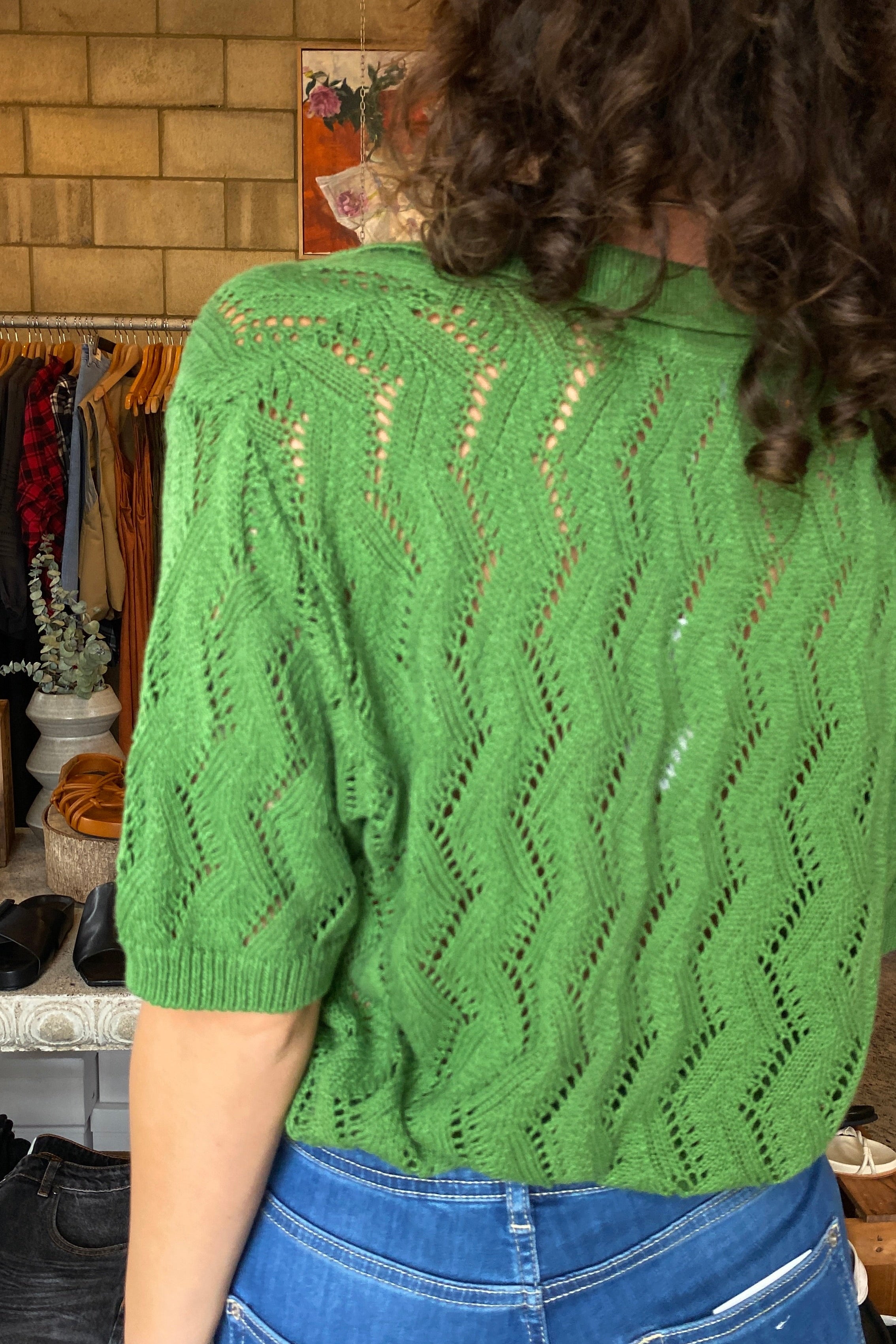 The Tatano Vines Polo features a timeless polo silhouette with a vee neckline, crafted from 100% cotton. Constructed in a lacy pattern knit wit a ribbed collar, cuffs, and hem, all in a lively herb green shade.